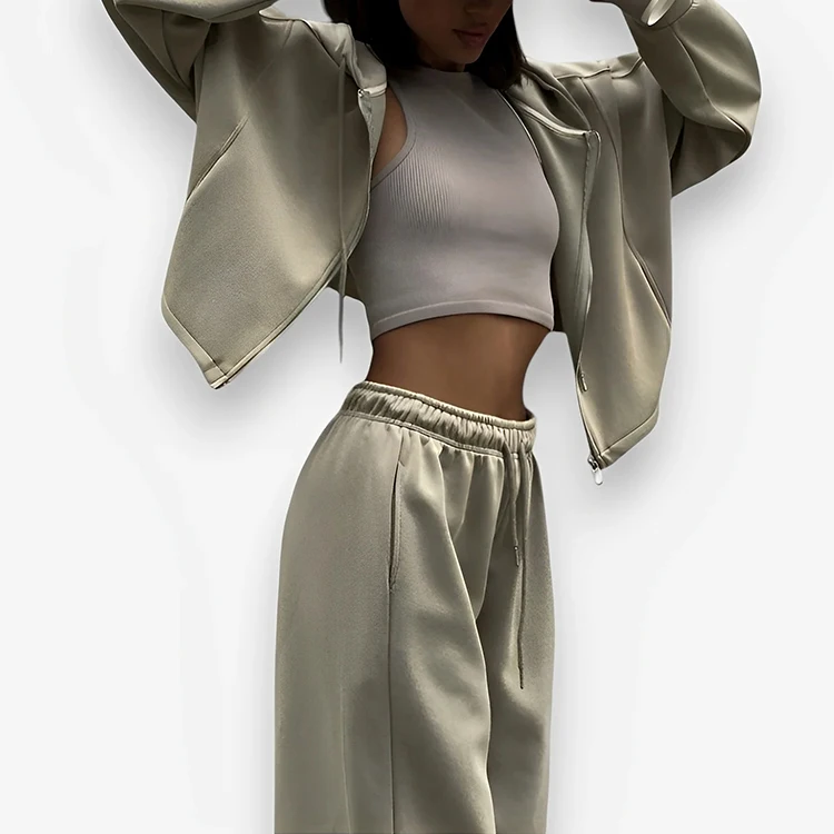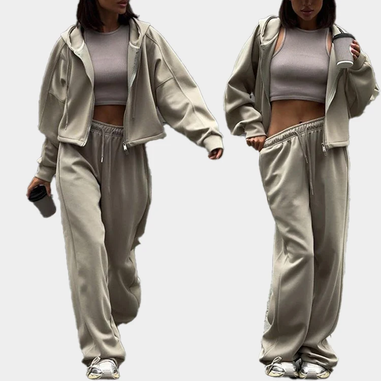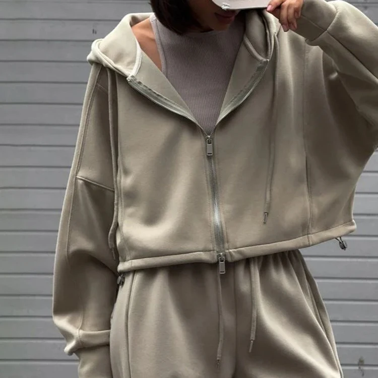 OEM Winter 2026 Zipper Activewear Heavyweight Loose Jogging and Oversize Sweatshirt 2pc Sport Outfit Women Workout Tracksuit