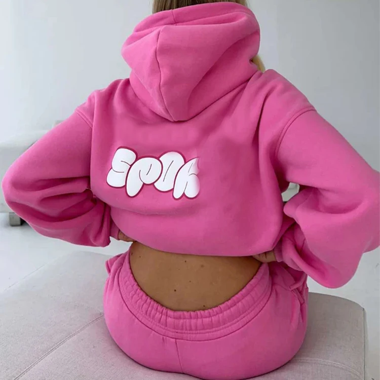 High Quality Sports Outfit Women Hoodies Tracksuit Loose Jogging and Hoodies 2pcs Loungewear Sporty Vintage Hoody Set