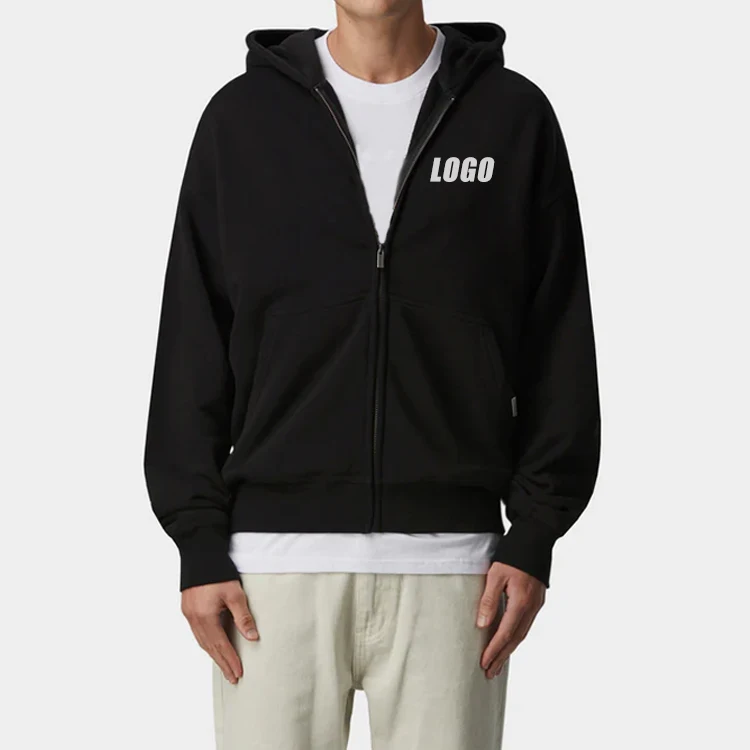 Custom OEM Solid Color Sports Outfit New Design Printed logo Lounge Active Wear Men Cotton Zipper-up Jacket