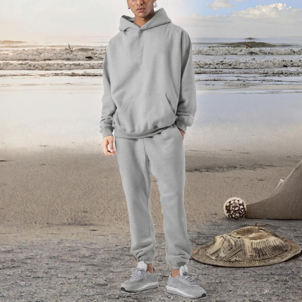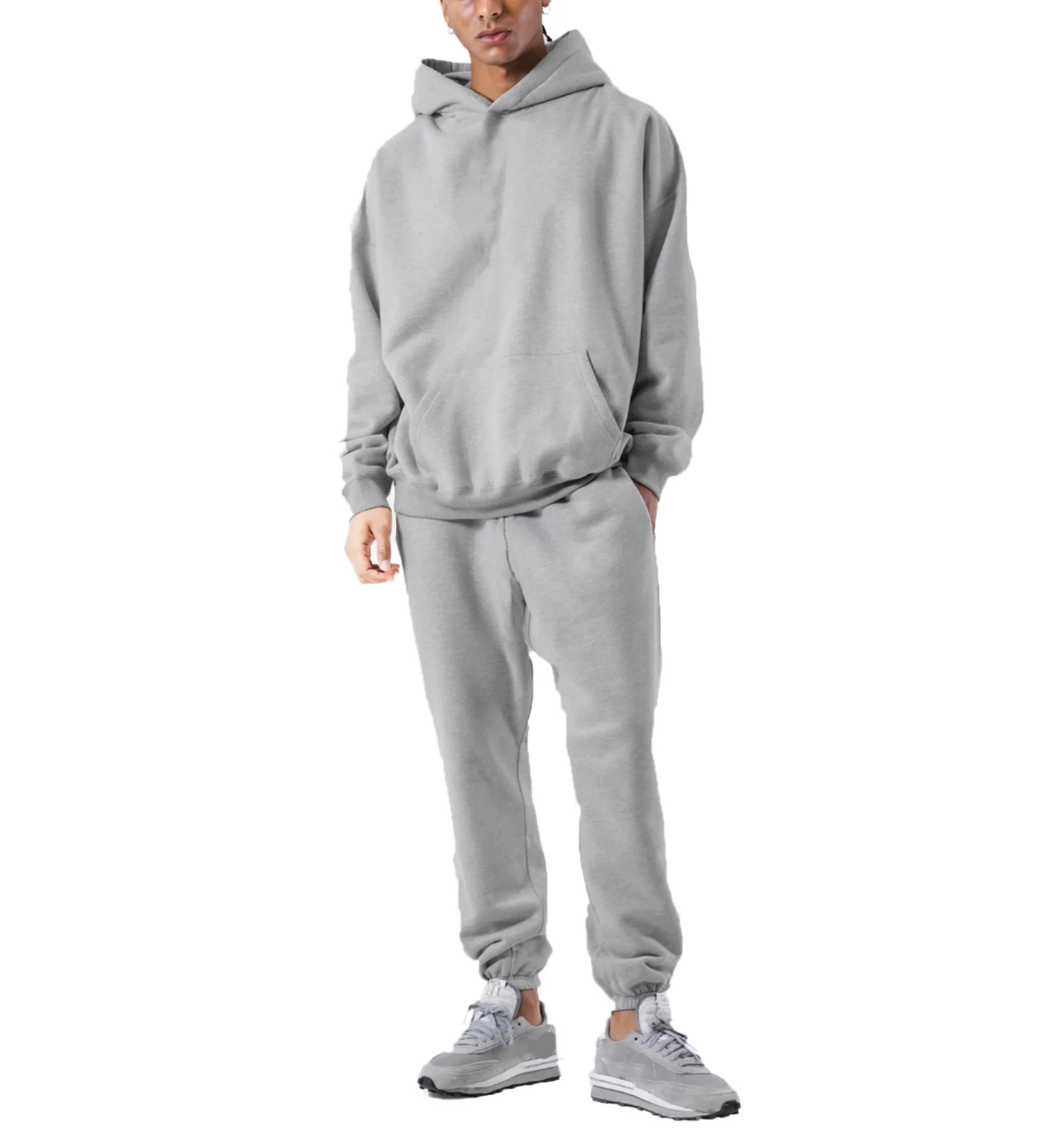 Custom Boxy Fit Men's Gym Jogging Set Marl Grey Light Weight Oversized Cotton Fleece Hoodie Joggers Plus Size Solid for Man