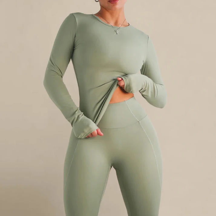ODM Logo Custom Breathable Slim Fit Tight Women's Sportswear Crew Neck Thumb Hole Yoga Top Wear Clothing Sports
