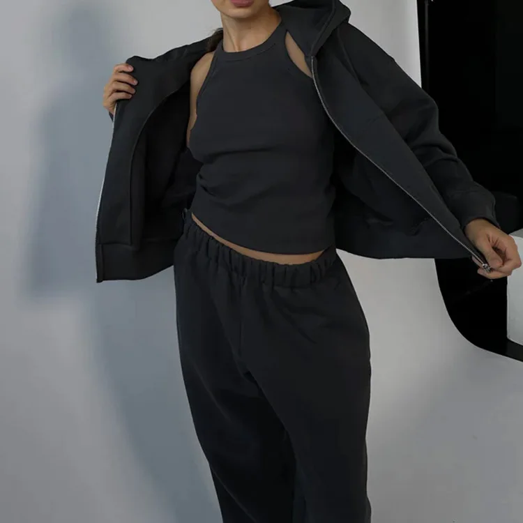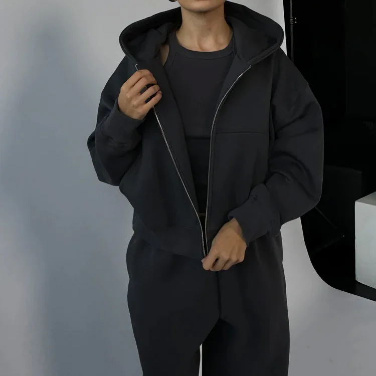 High Quality New Activewear Sports Outfit Workout Vintage Women Zipper Hoodies Tracksuit Solid Color Puff Printed Clothing