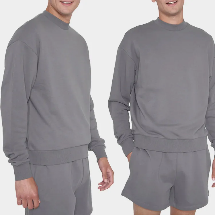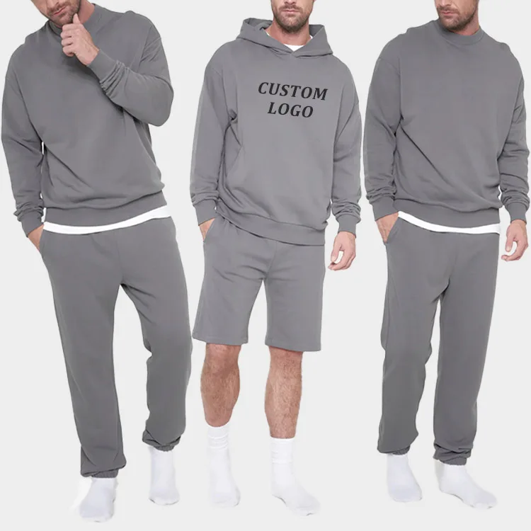 High Quality Solid Color Blank Gray Sports Outfit Activewear Tracksuits Workout Cotton Vintage Sporty Breathable Set for Men