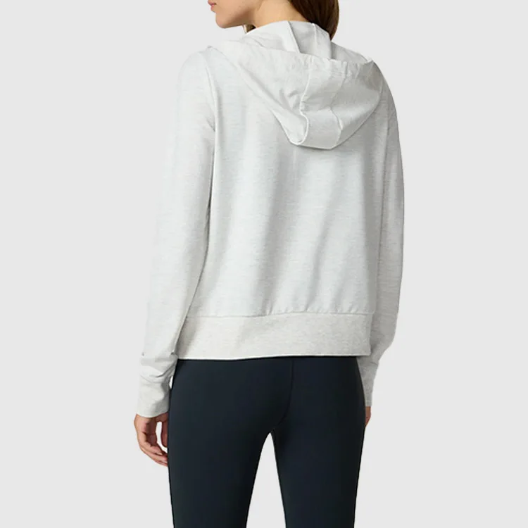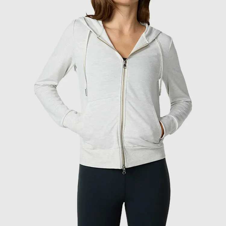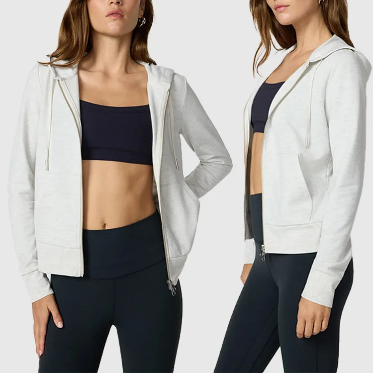Sportswear 1pc Women Workout Cotton Cropped Fitted Full Zipper Hoodies Vintage Long Sleevesweatshirt with Pockets for Ladies