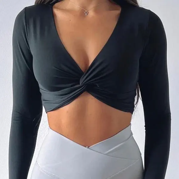 Wholesale Hot Selling Comfortable Active Wear Slim Fit One Piece Low V Neck Long Sleeve Clothing Outfit Sexy Yoga Top for Women