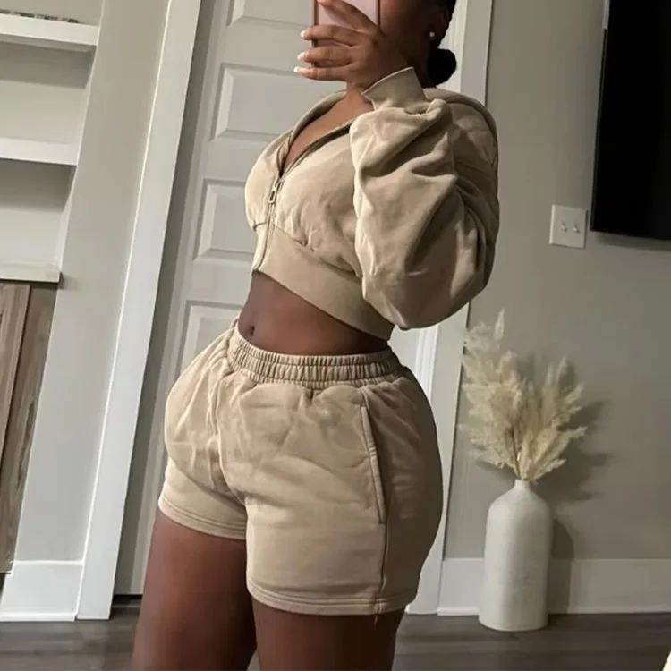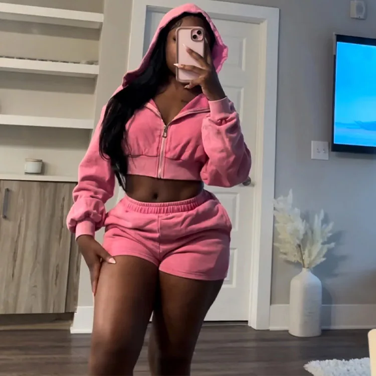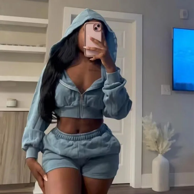 High Quality Vintage Womencropped Fitted Full Zipper Women Hoodies Sky Blue Athleisure Streetwear Wash Oversized Sweatshirt