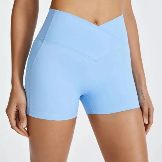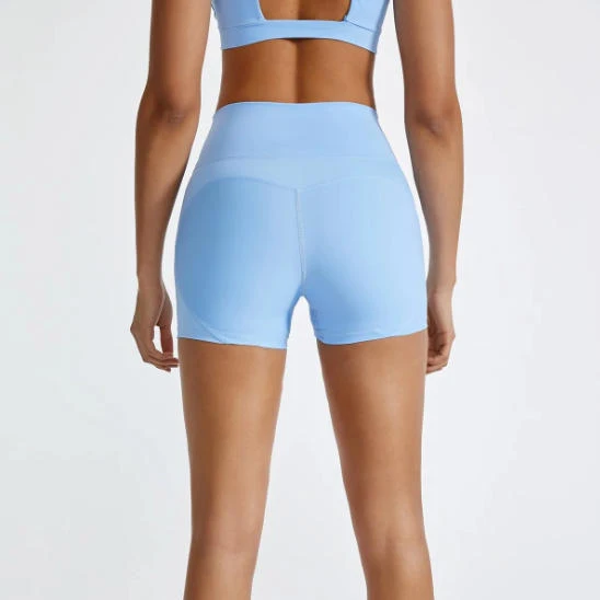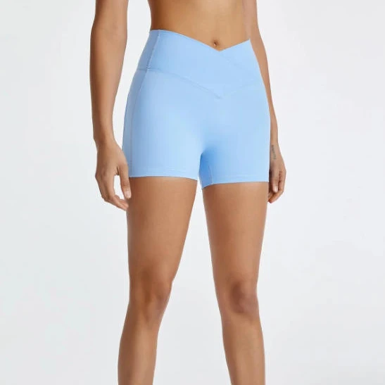 V High Waist Four Way Stretch Fitness Elasticity Breathable Workout High Waist Female Nylon Spandex Yoga Shorts for Women