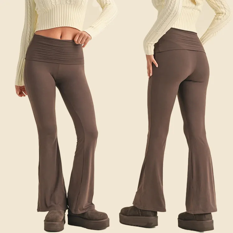 YISHENHON High Quality Gym Yoga Flare Leggings Hot Selling High-Waisted Wide Leg Pants for Women Solid Casual Sport Running