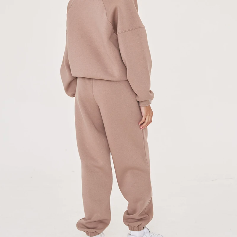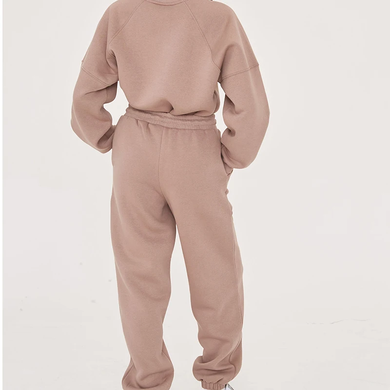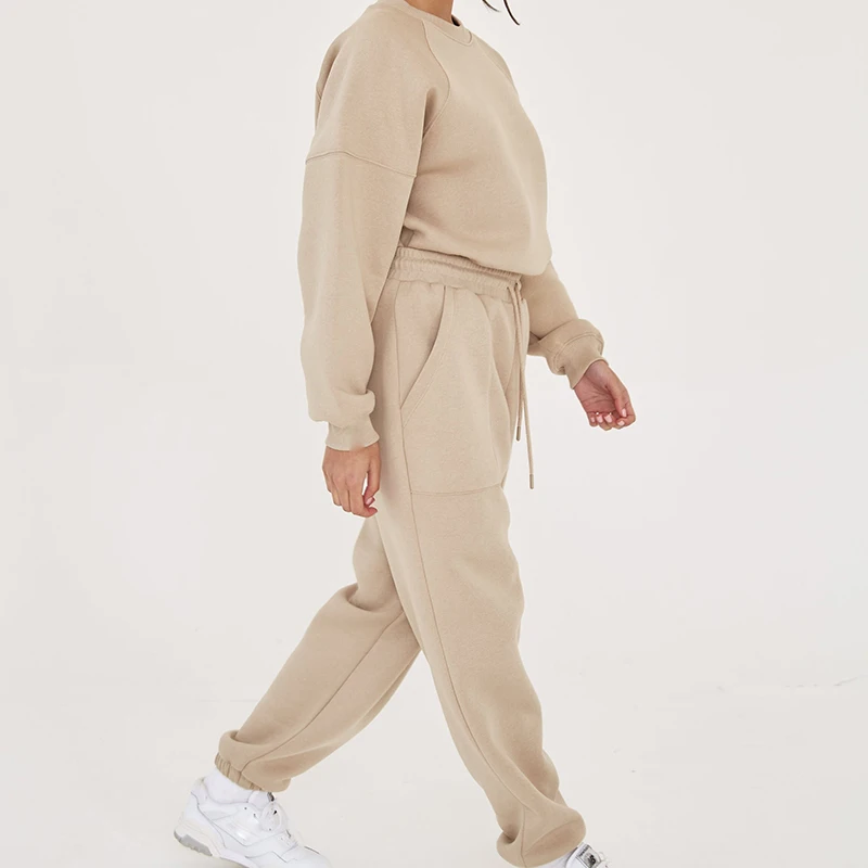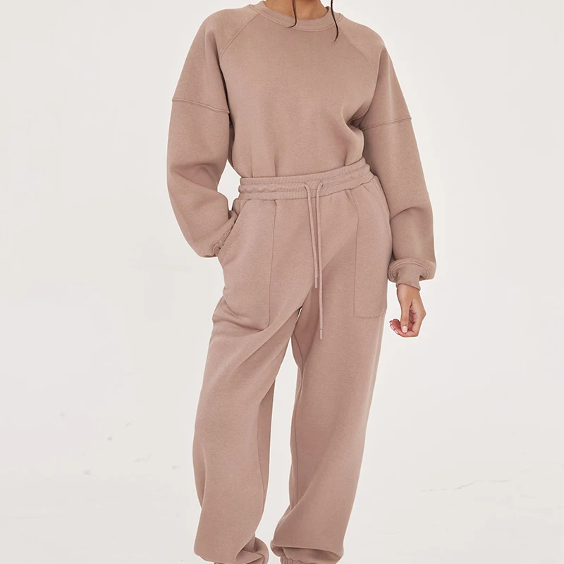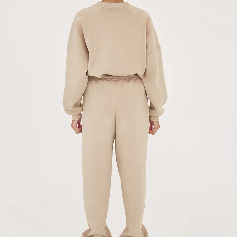 High Quality OEM O Neck Puff Printed Blank Vintage Sportswear 2pcs Workout Winter New Activewear Cotton Ladies Set