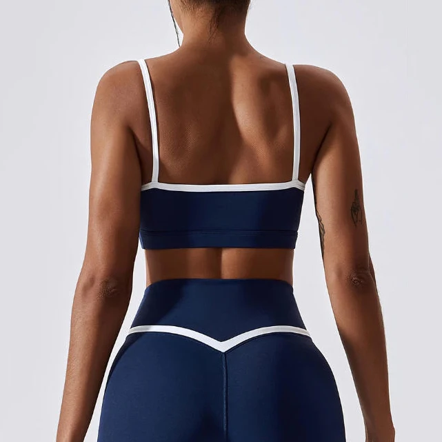 OEM Wholesale White Line Fashionable Custom logo New Sports Breathable V Waist Gym Yoga Bra and Shorts Sets Woman