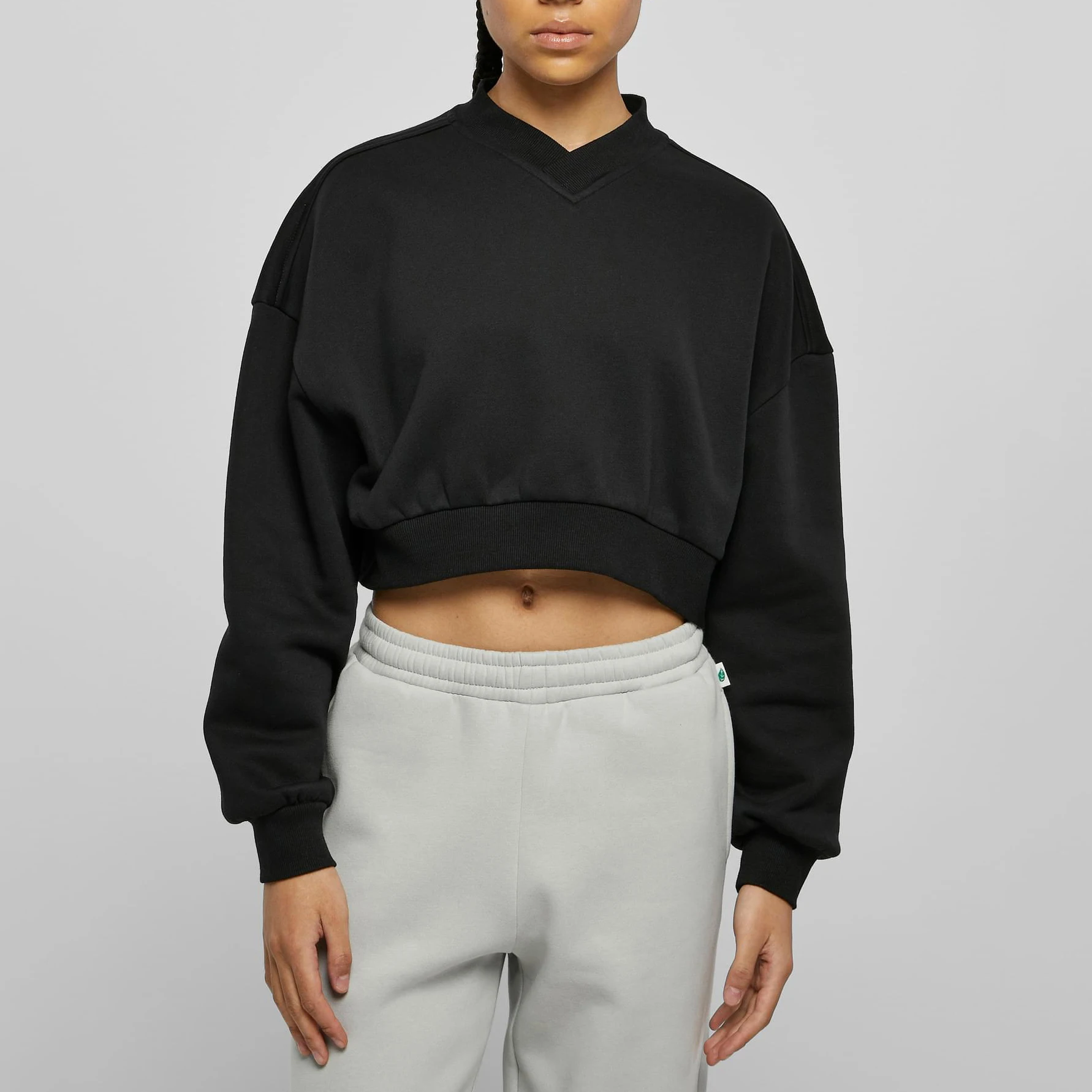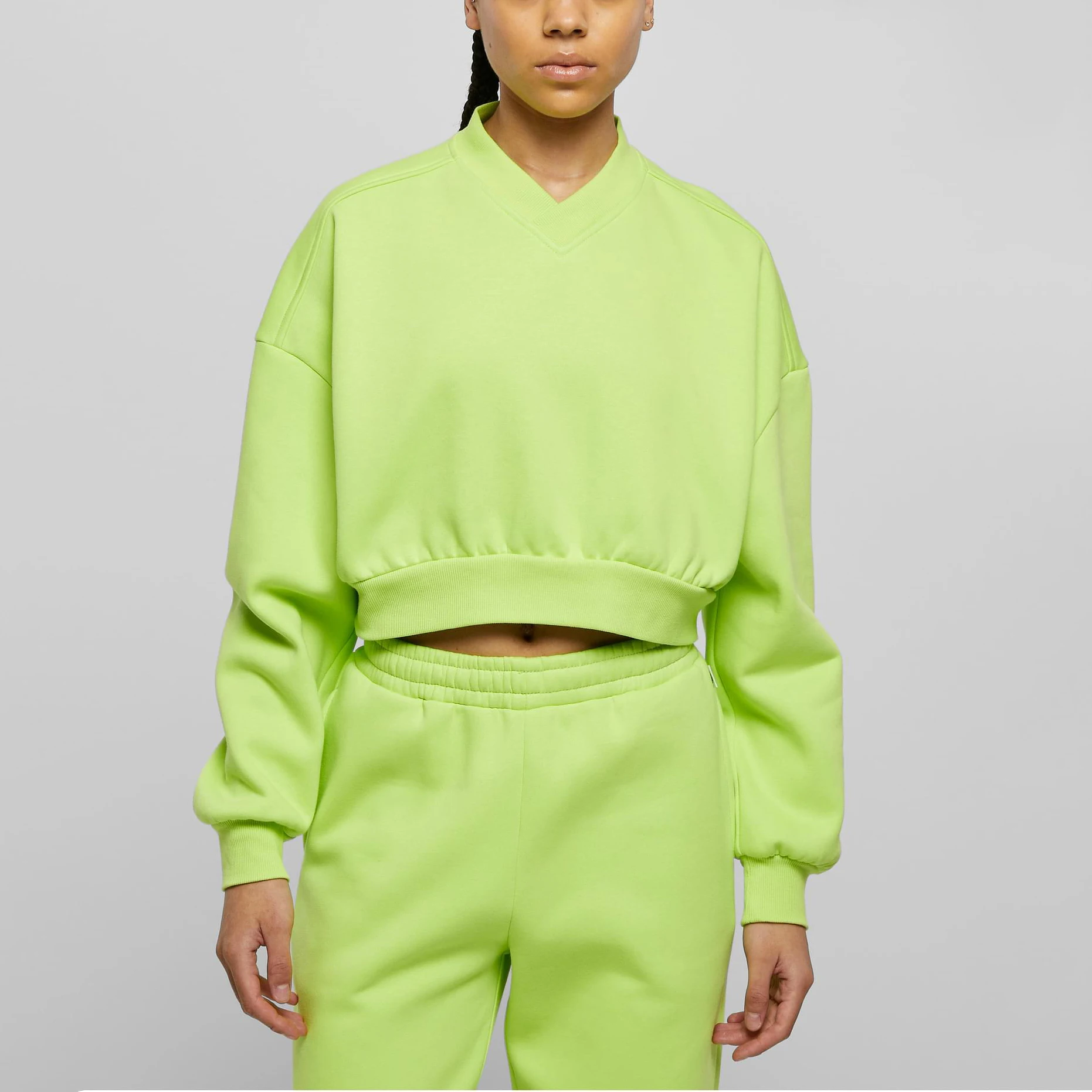 Custom Logo Ribbed V Neck Sportswear Shorts Bottom Pullover Oversized Dropped Shoulder Tops Hoodie for Women