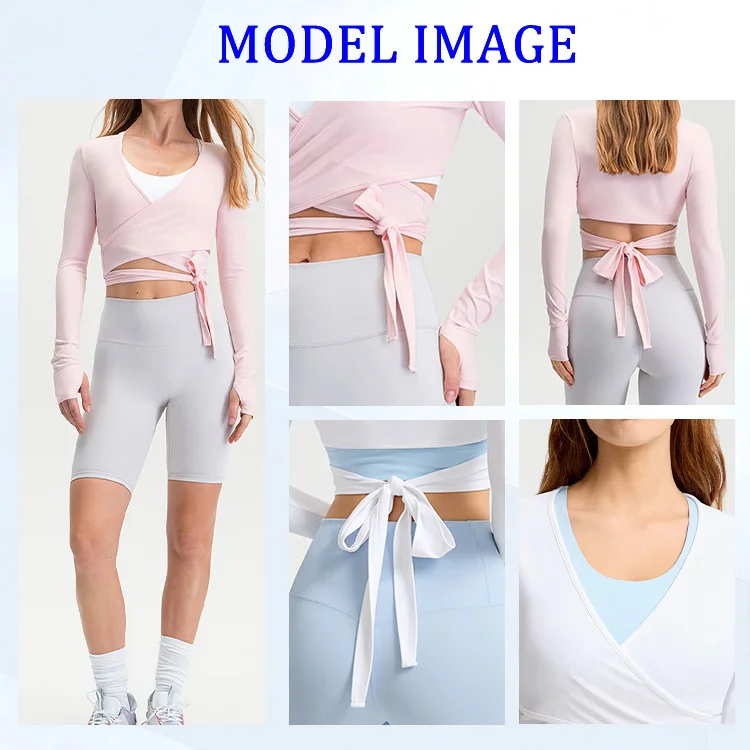 Pilates Styles Women Sport Outfit Workout 2026 Long Sleeves Shirts Active Yoga Top pink Wrap Sweatshirt for Girls