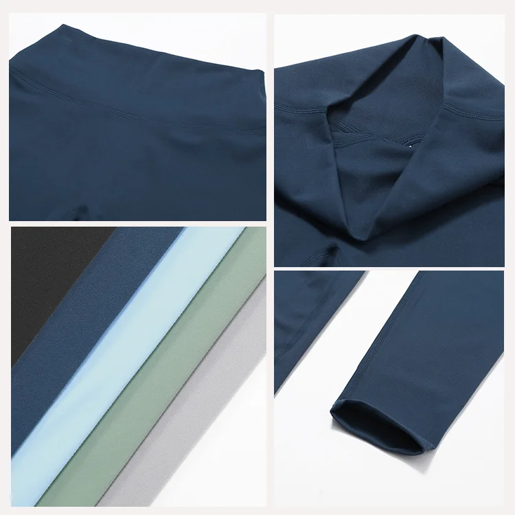 YISHENHON Women's Fitness Activewear Set 5pcs Seamless Yoga Leggings & Bras with Long Sleeve Gym Tops Solid Pattern Sport Outfit