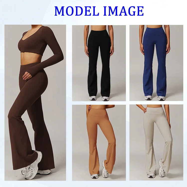 YISHENHON High Quality Gym Yoga Flare Leggings Hot Selling High-Waisted Wide Leg Pants for Women Solid Casual Sport Running