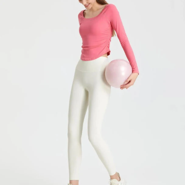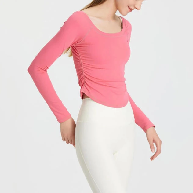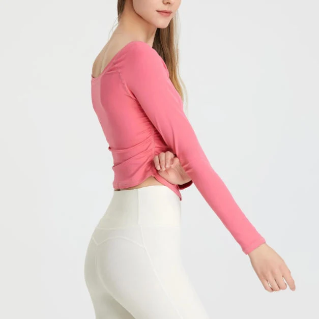 OEM Side Fold Comfortable Gym Breathable Sport Yoga Top Active Wear Women's Low Neckline Long Sleeves Shirts