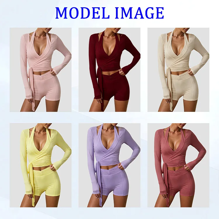 2026 New Activewear Women Yoga Wrap Top Bra and Shorts 3pcs Athleisure Girls Pilates Breathable High Support Anti-Uv Set