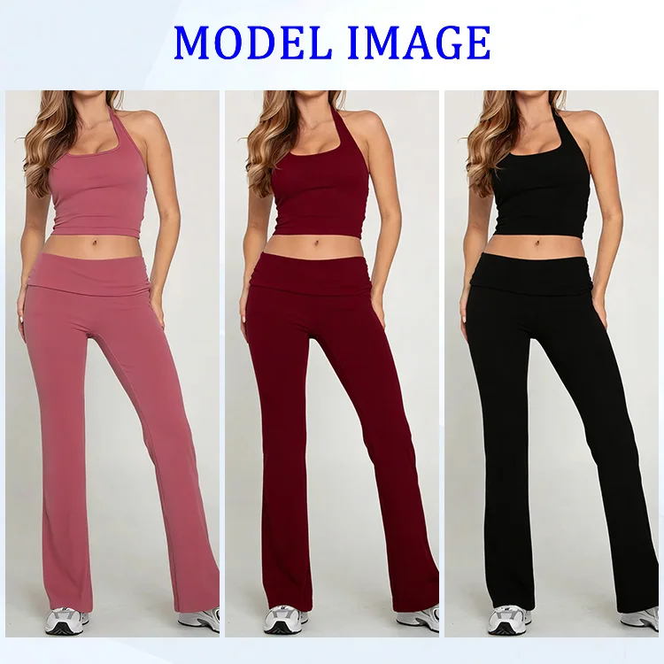 YISHENHON High Quality Gym Yoga Flare Leggings Hot Selling High-Waisted Wide Leg Pants for Women Solid Casual Sport Running