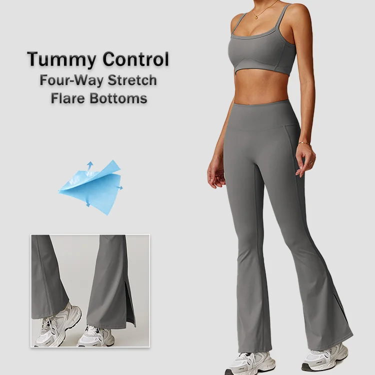 Popular Design 2026 Workout Gym Fitness Breathable Women Flare Bottoms Full Length Athleisure Pilates Style Leggings for Girls