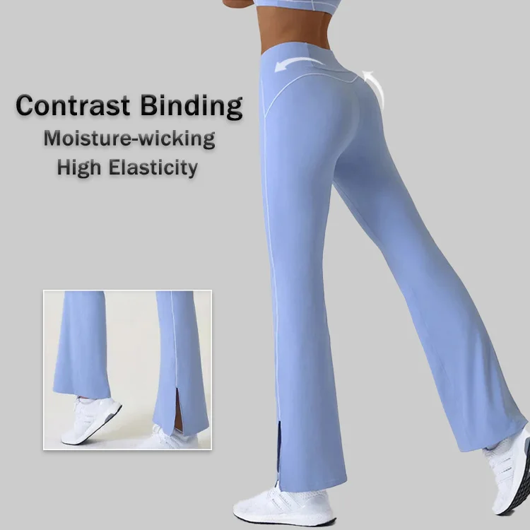 High Quality Ladies New Activewear Contrast Binding Yoga Leggings 1pc Vented Cuffs Flare Bottoms Tummy Control Pilates Pant