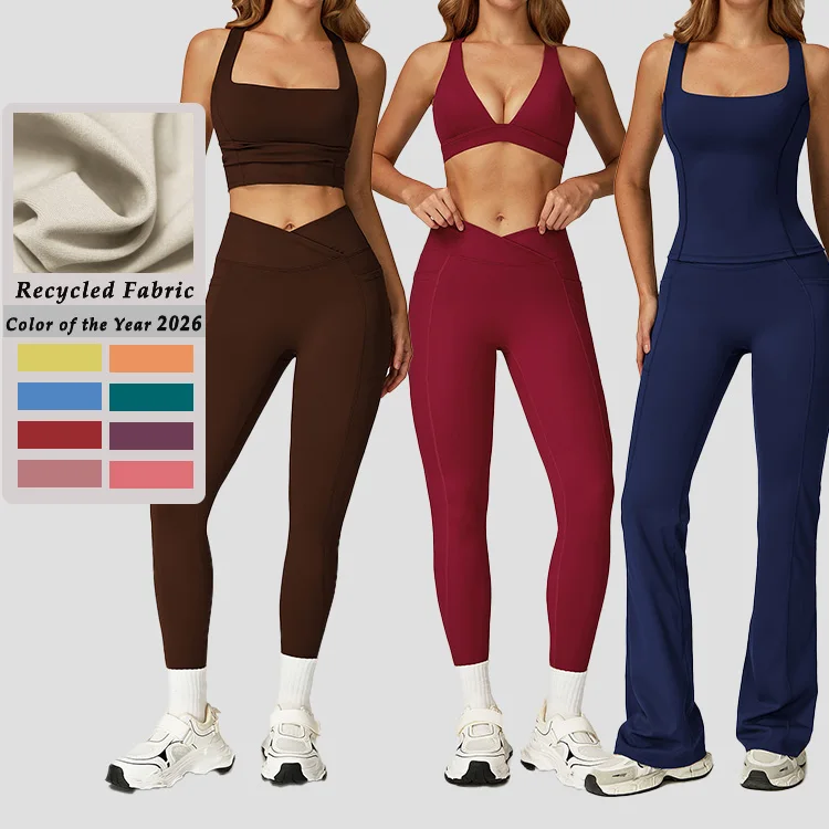 YISHENHON High Quality Gym Yoga Flare Leggings Hot Selling High-Waisted Wide Leg Pants for Women Solid Casual Sport Running