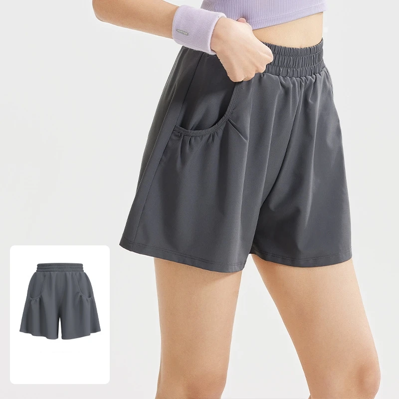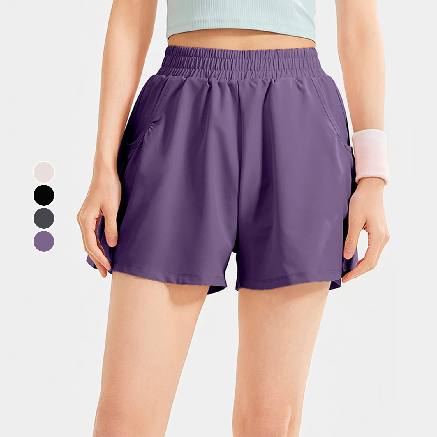 Women's High Waist Sports Shorts Elastic Waist Closure Casual Running Outdoor Fitness Pants Hip Lifting Design Solid Pattern