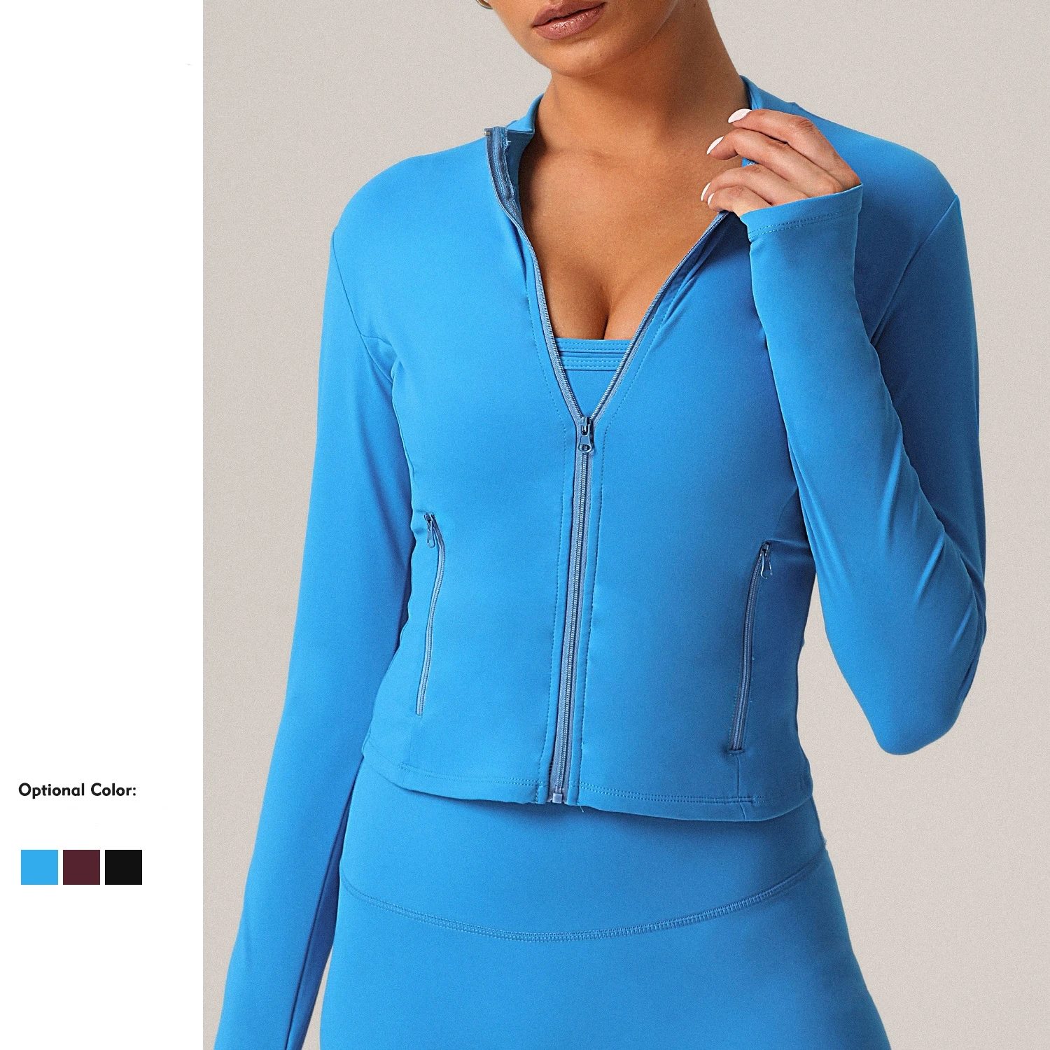 YISHENHON Custom Women's Yoga Jackets Thumb Hole Zipper Lightweight Fitness Sports Jackets Workout Yoga Clothing With Pocket