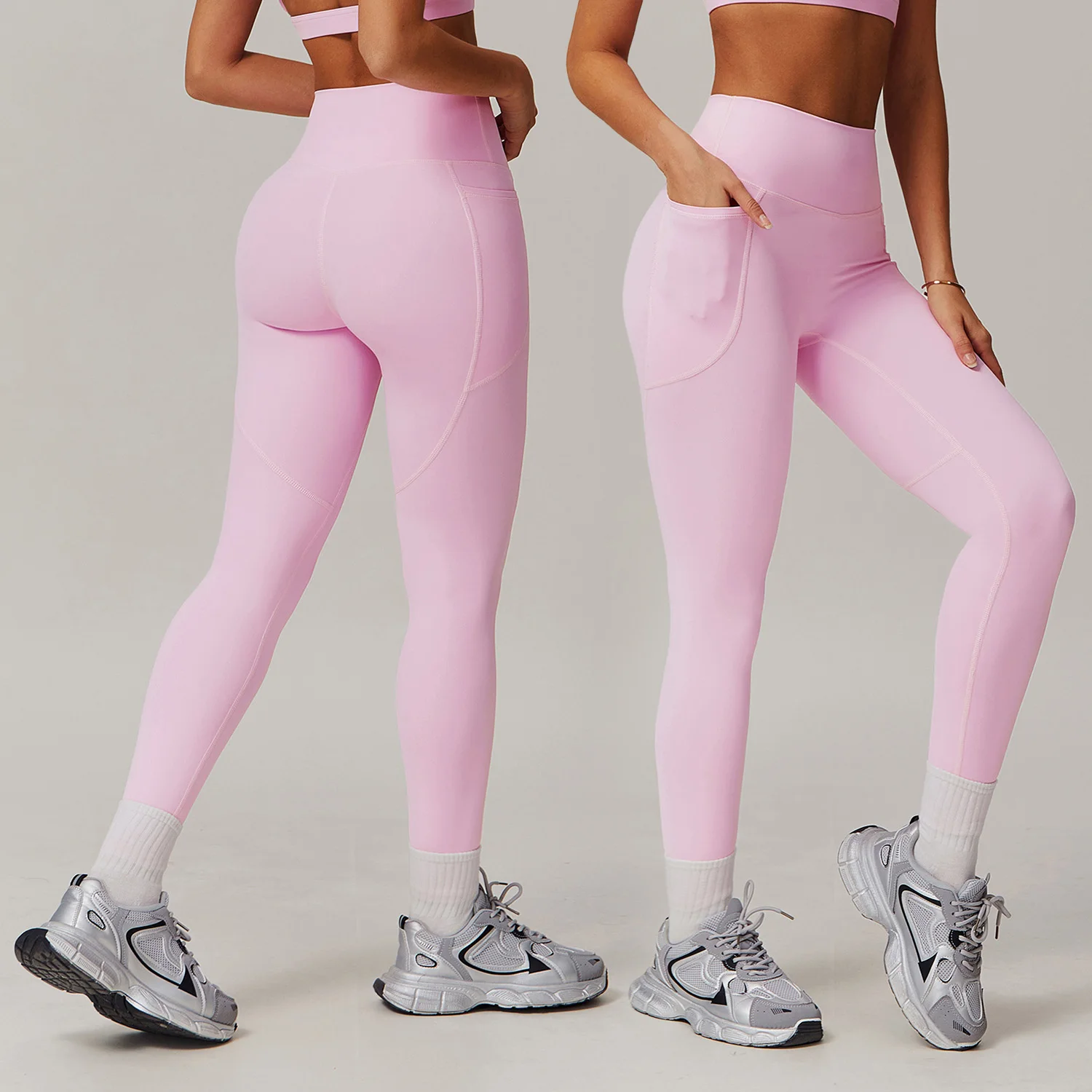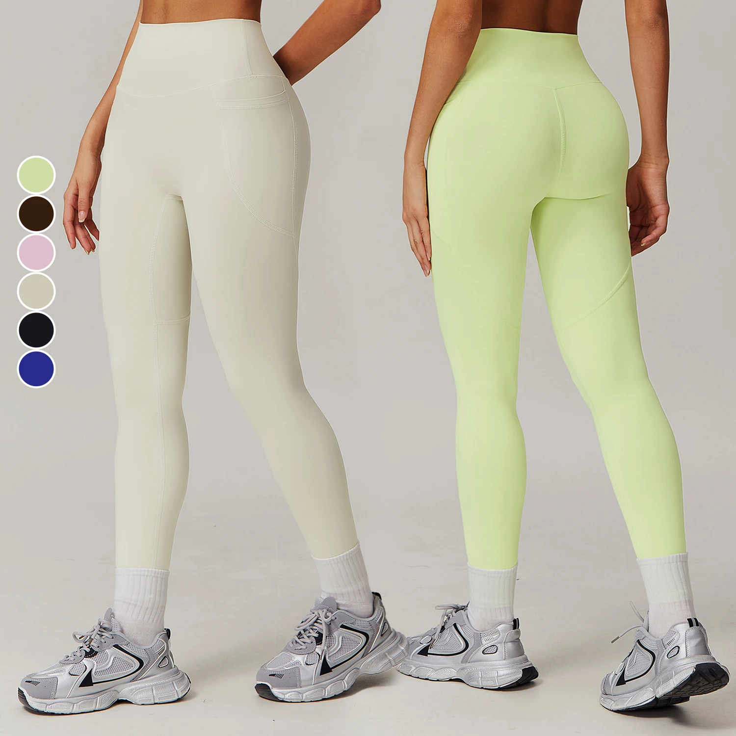 YISHENHON Custom Butt Lift Yoga Leggings for Women High Waist Sport Pants with Pockets Running Fitness Workout Gym Activewear
