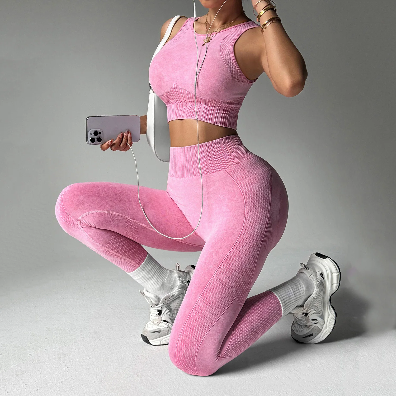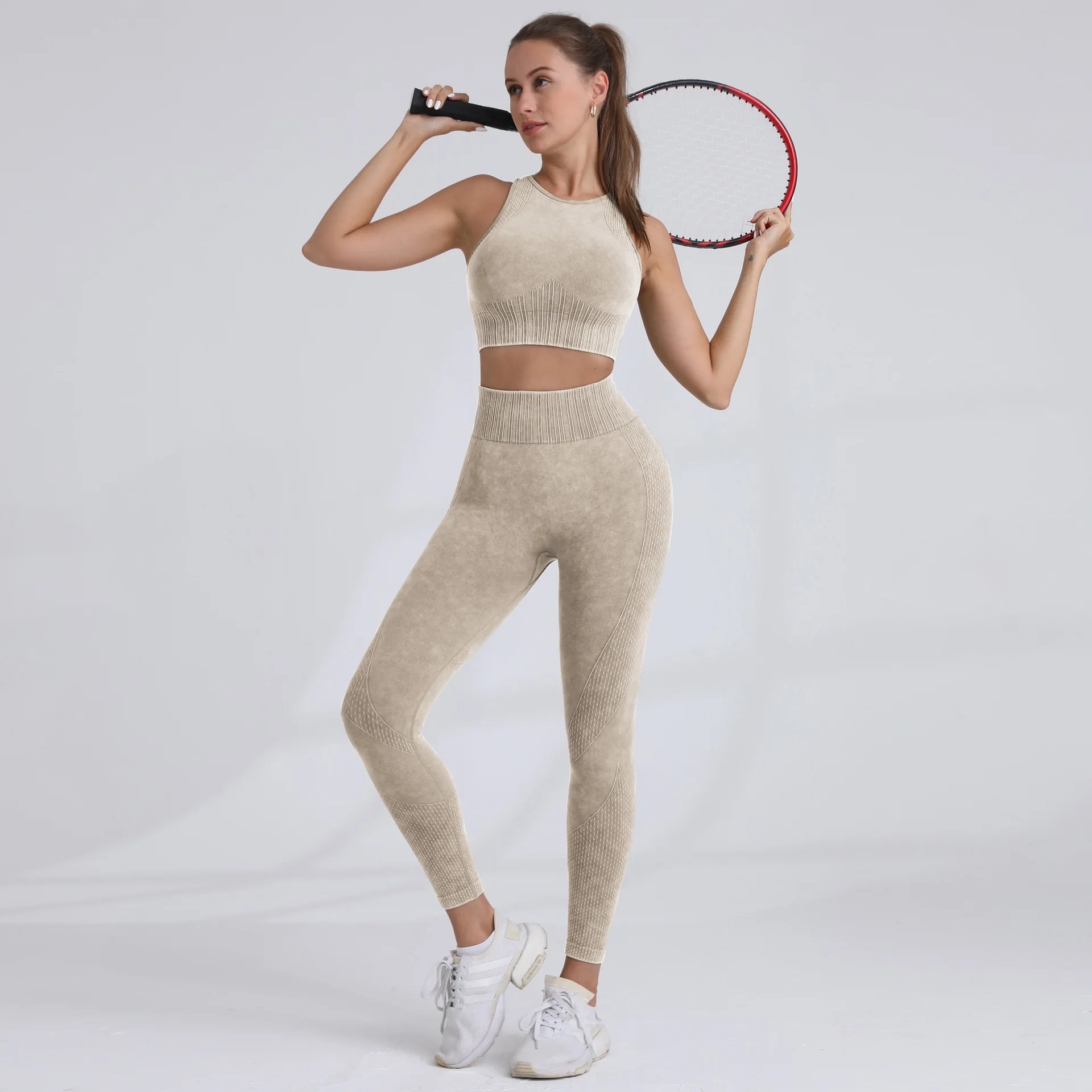 Custom Logo Washed Fitness Set Woman Quick Drying Sportswear Seamless High Waist Hip Lifting Breathable Workout Activewear Sets