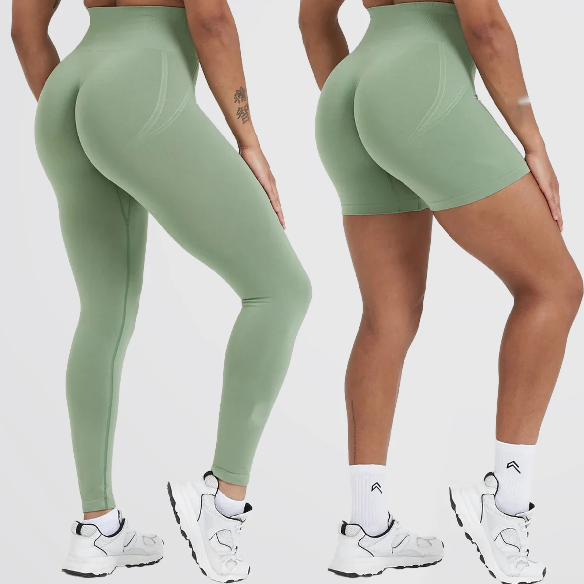 High Quality Seamless Yoga Scrunch Tight Peach Hip Set for Women Fitness Pants Elastic Waist Closure Solid Yoga Leggings