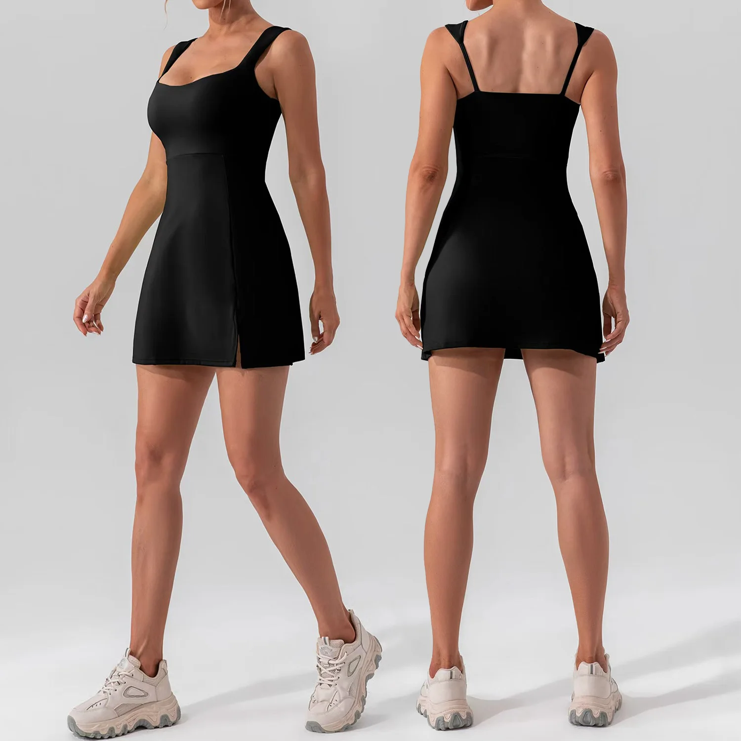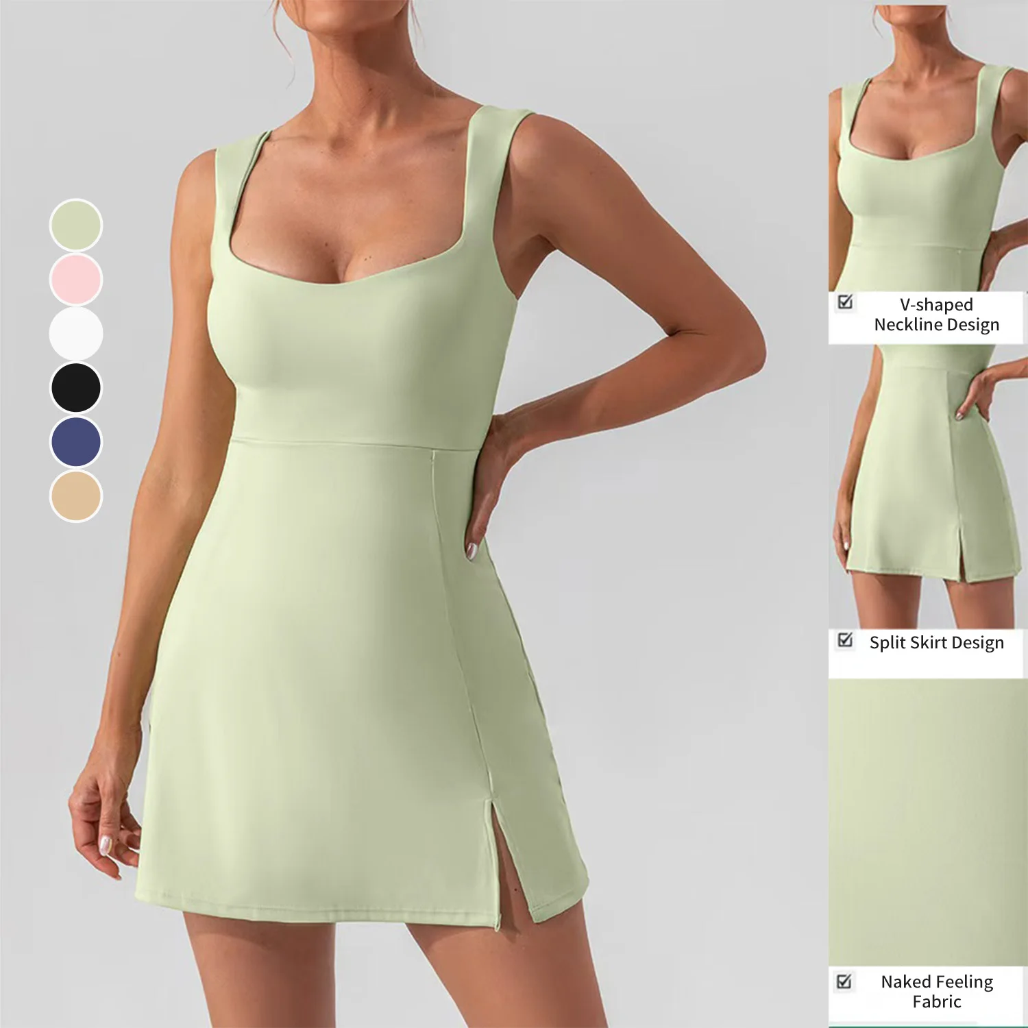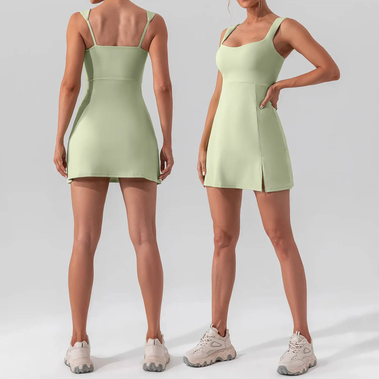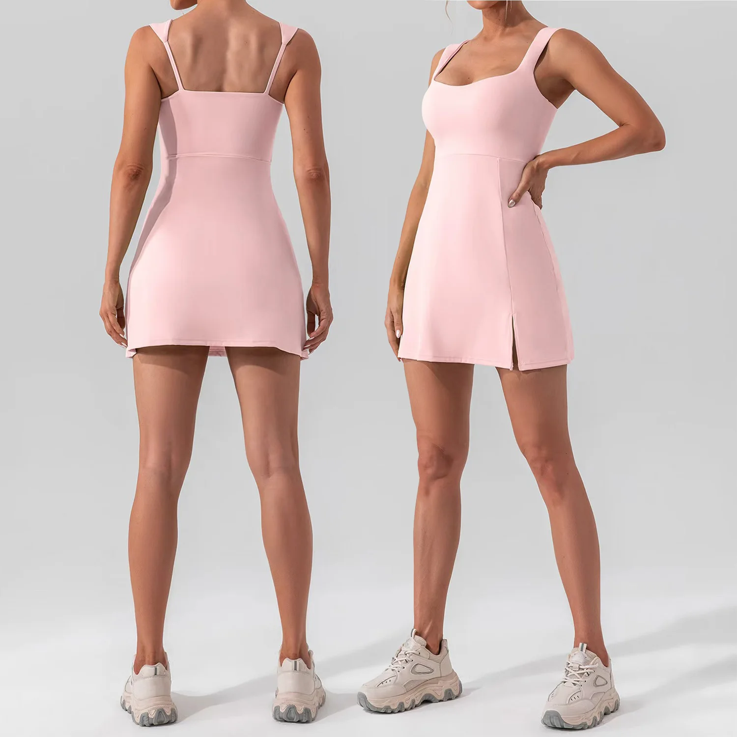 Custom Logo Quick Drying Tennis Dress Sexy Sling Lightweight Breathable Sleeveless Outdoor Yoga Golf Tennis Skirt for Women