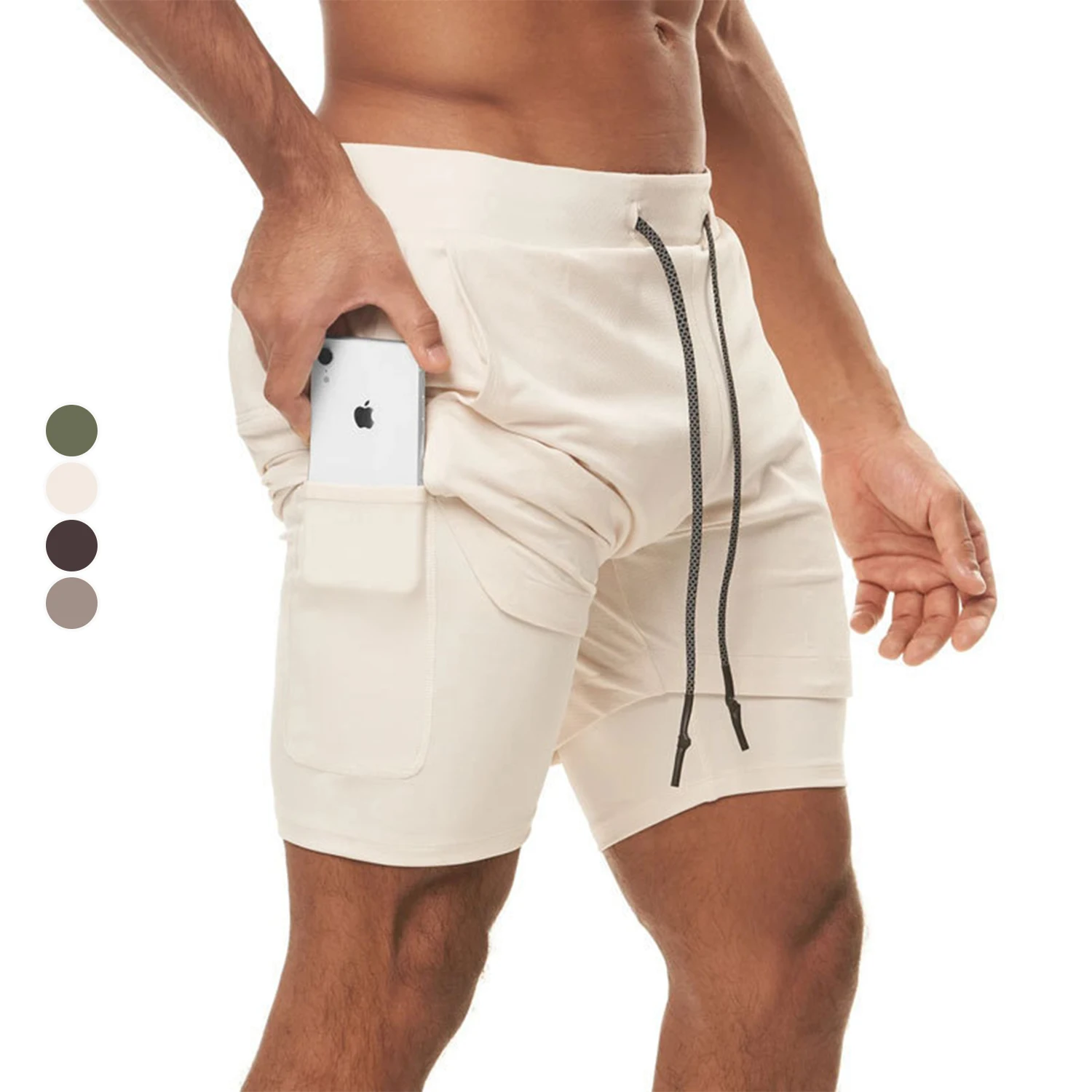 New Men's Sports Breathable Five-Point Shorts Double Layer Color Matching Solid Color Towel Hanging Fitness Running