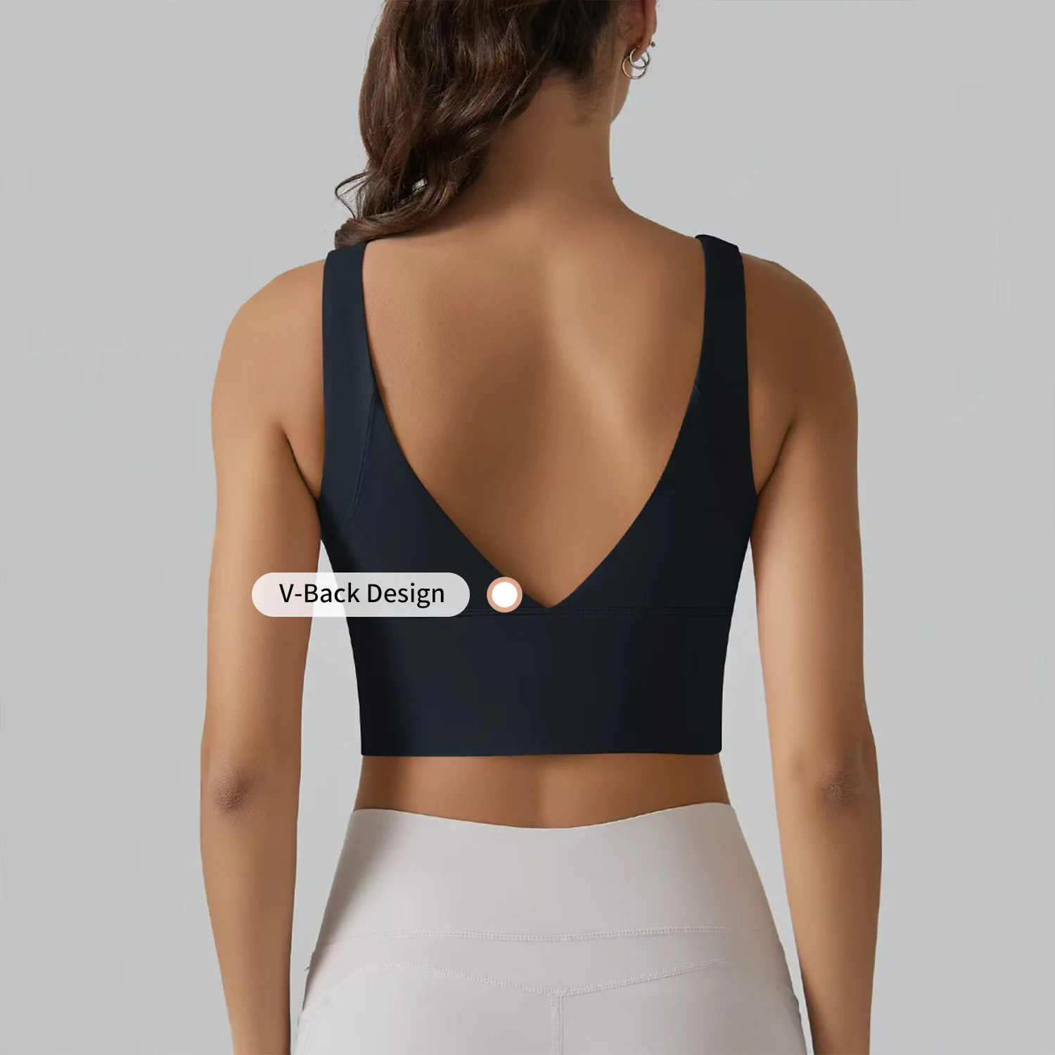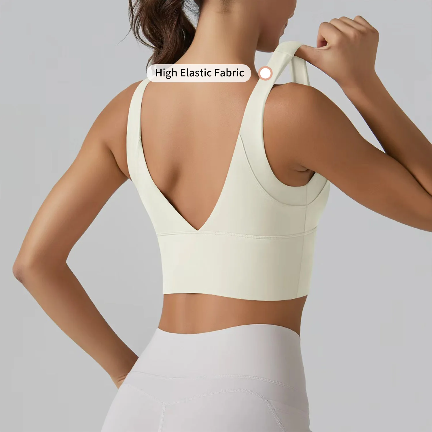 Custom Logo Women's Breathable V Back Sports Bra High Elastic Backless Outdoor Running Shockproof Solid Color Quick Dry Yoga Bra