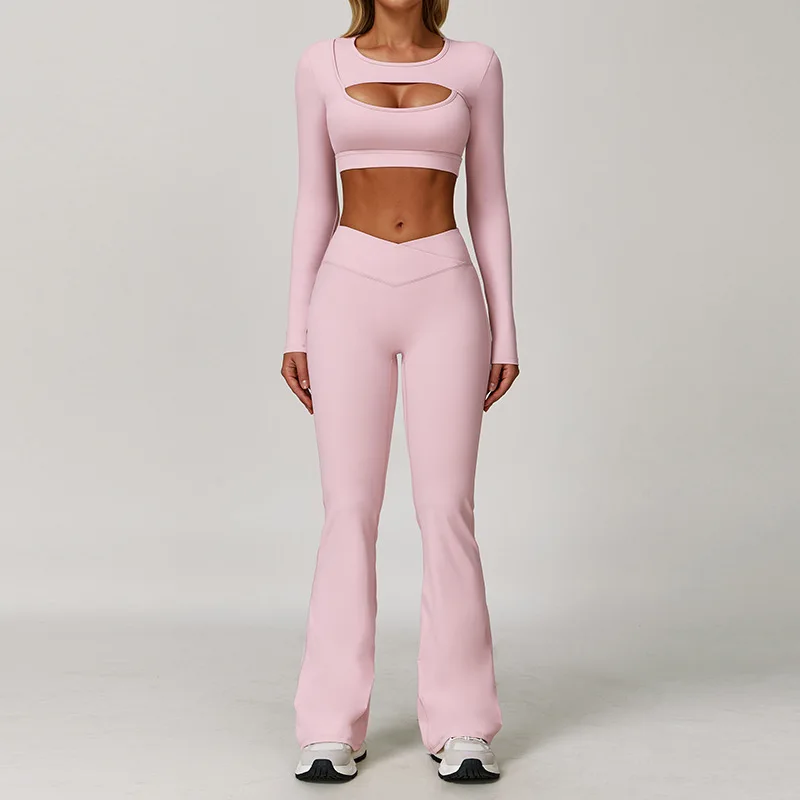 YISHENHON High Quality Gym Yoga Flare Leggings Hot Selling High-Waisted Wide Leg Pants for Women Solid Casual Sport Running
