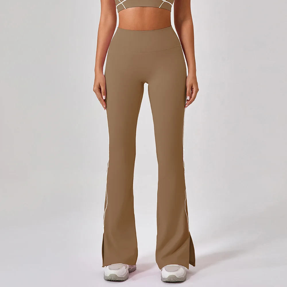 Women's High-Waisted Flared Yoga Pants for Summer Nude Hip-Lifting Solid Spandex/Nylon Dance Fitness Outdoor Sports Slit Pants