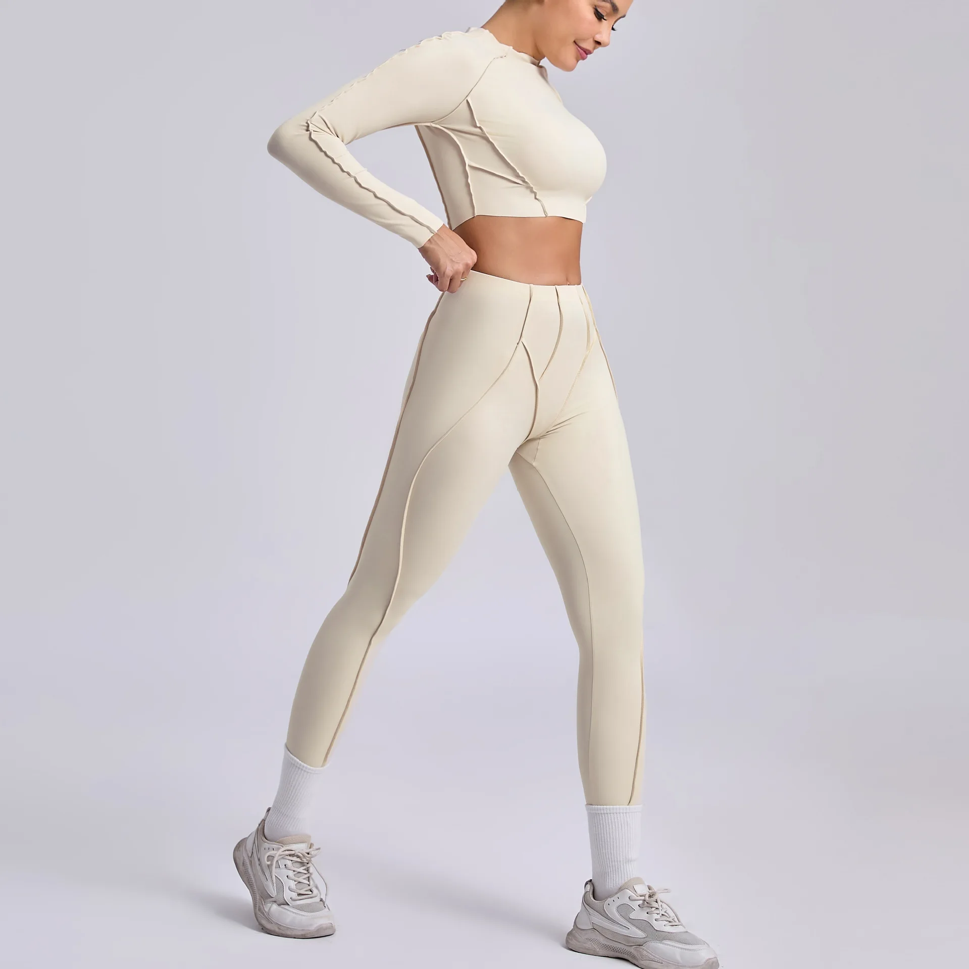 Best Quality Three Dimensional Aesthetic Yoga Suit Women's Pleated Butt Tight Slim-fit Body Shaping Running Sports Fitness Set