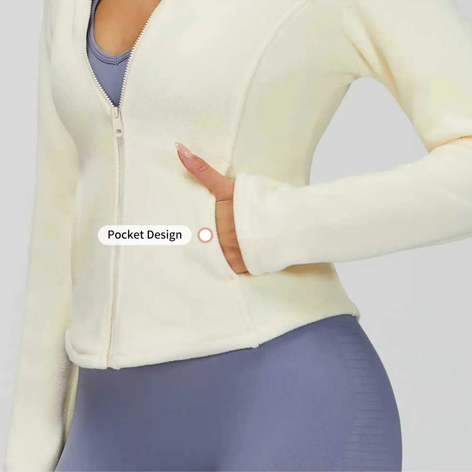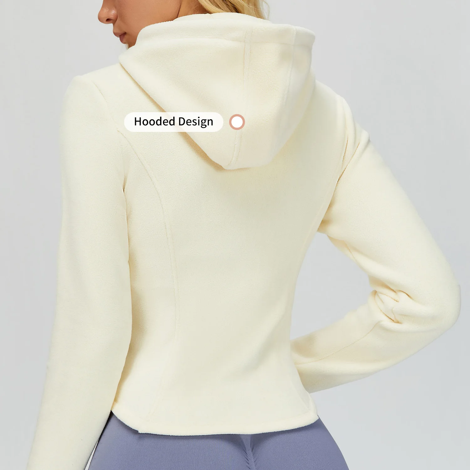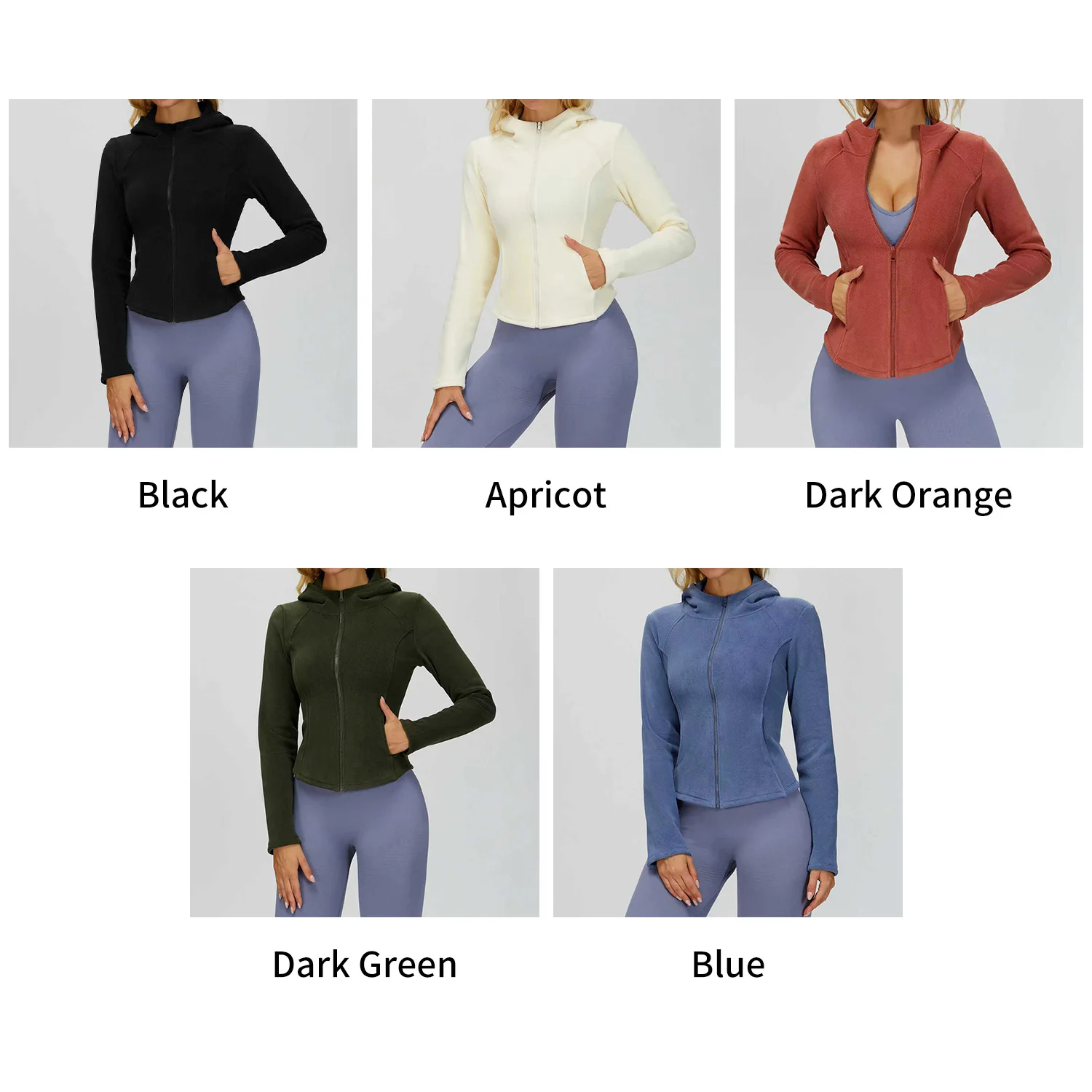 Custom Logo Women's Zipper Hoodie Jacket Fleece Slim-Fit Solid Color Windproof Keep Warm Casual Yoga Jacket with Pocket