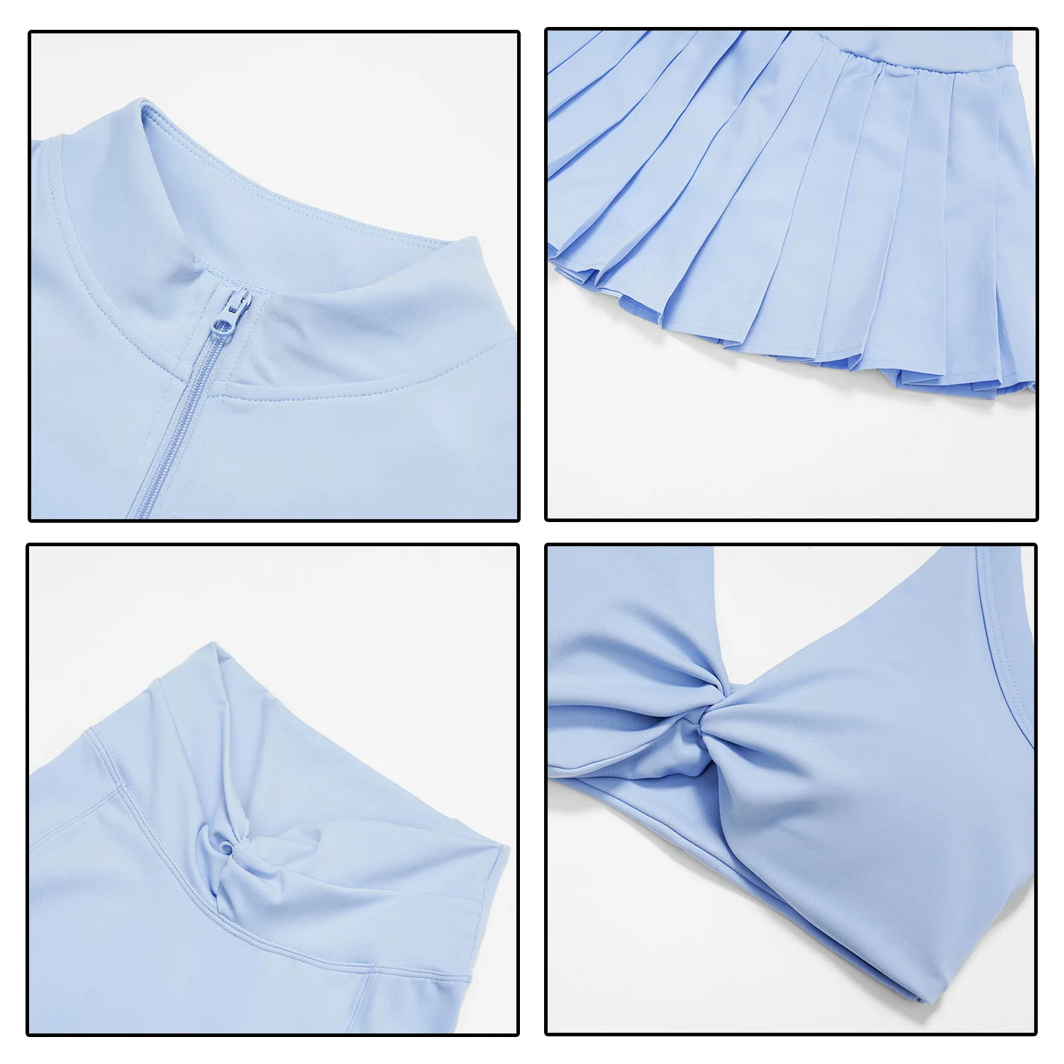 YISHENHON Women's Outdoor Running Tennis Skirt Anti-slip A-Line Skirt with Stand Collar and One Piece Dress Cloud Sense Design