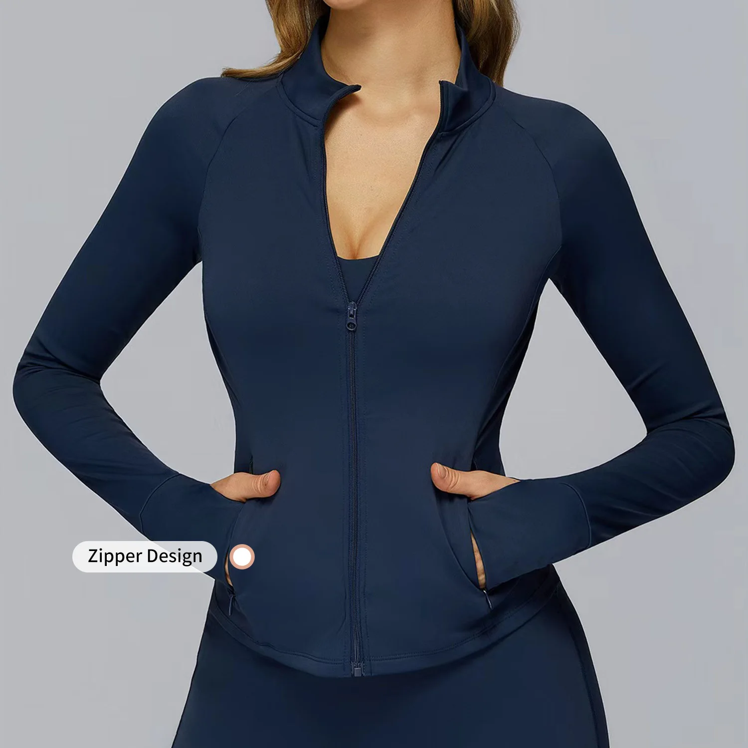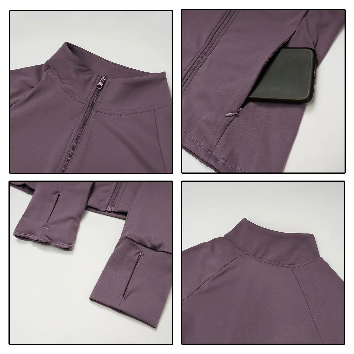 YISHENHON Custom Women's Yoga Jackets Thumb Hole Zipper Lightweight Fitness Sports Jackets Workout Yoga Clothing With Pocket