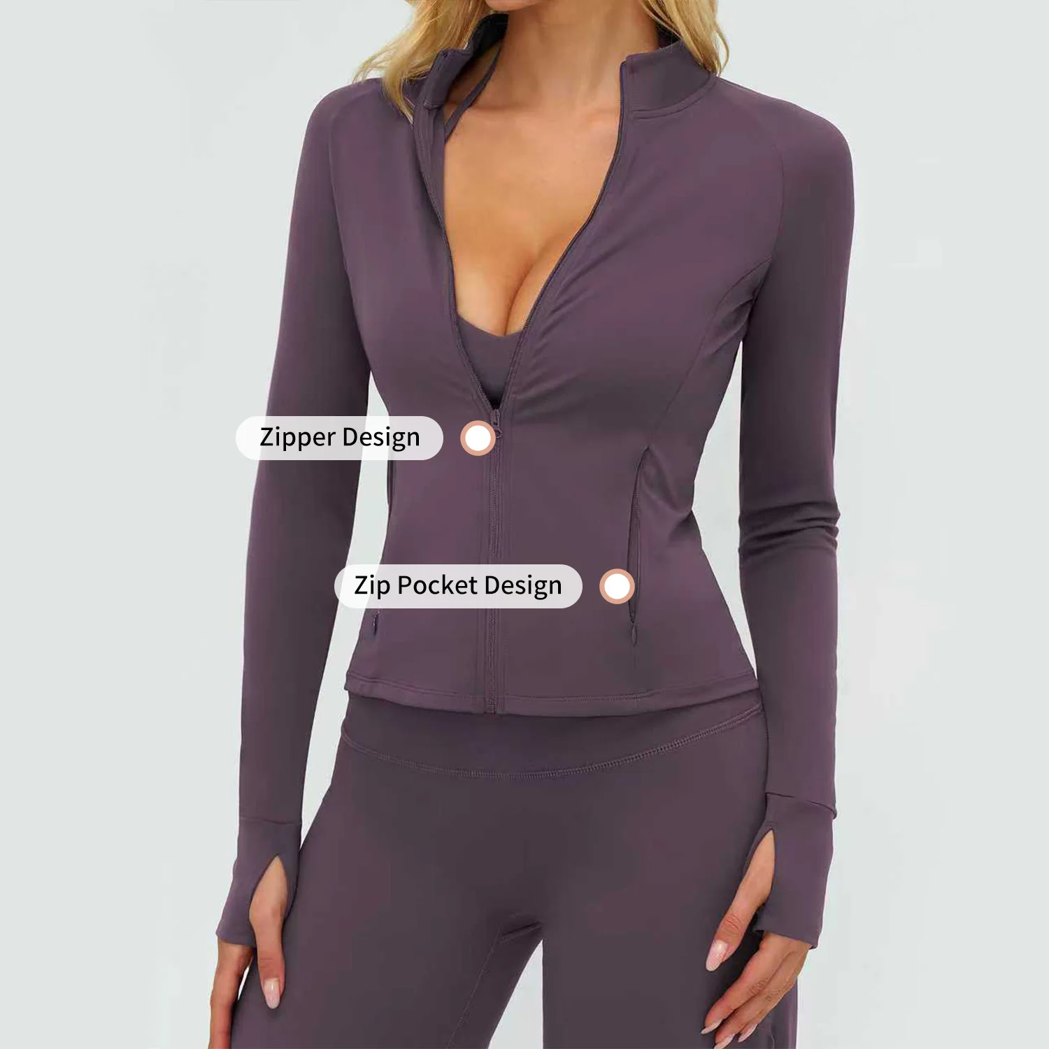 YISHENHON Custom Women's Yoga Jackets Thumb Hole Zipper Lightweight Fitness Sports Jackets Workout Yoga Clothing With Pocket