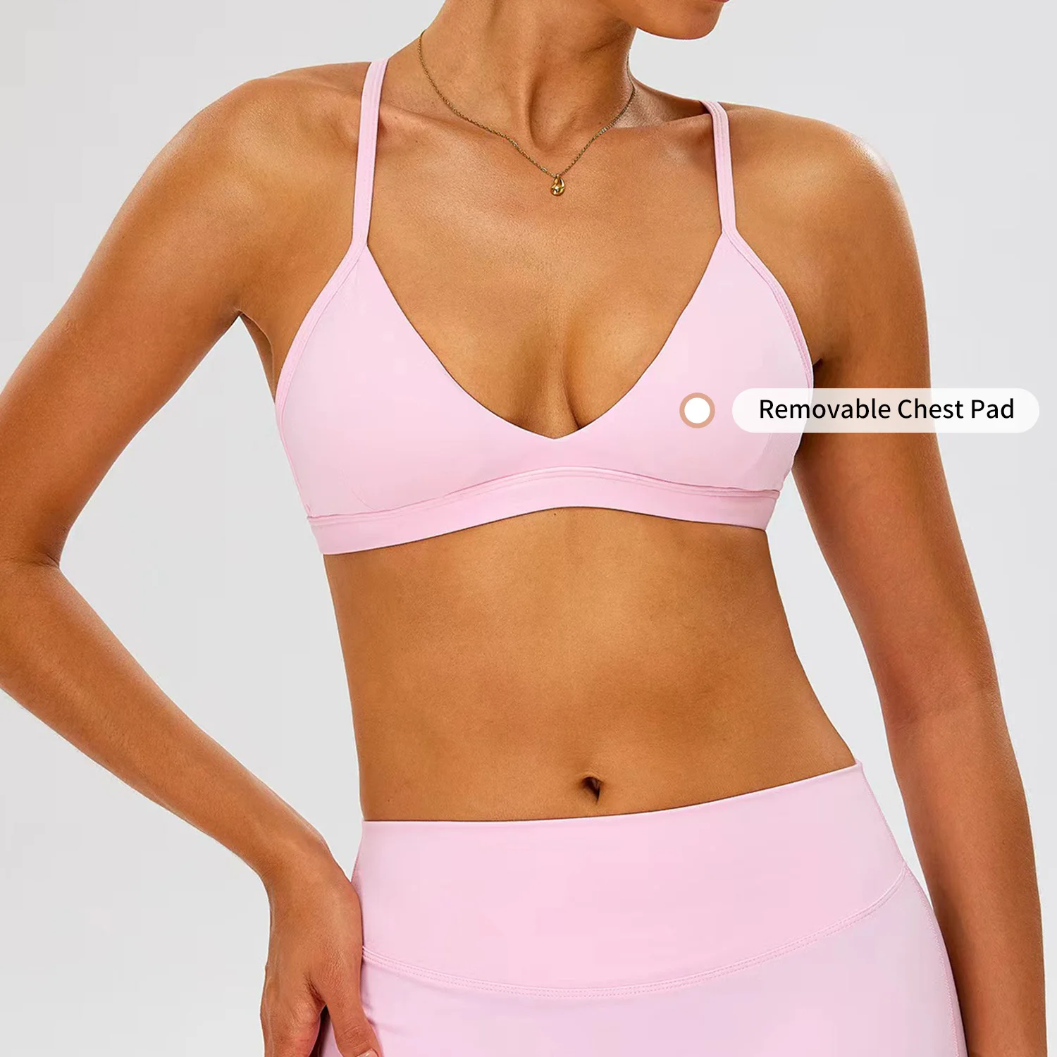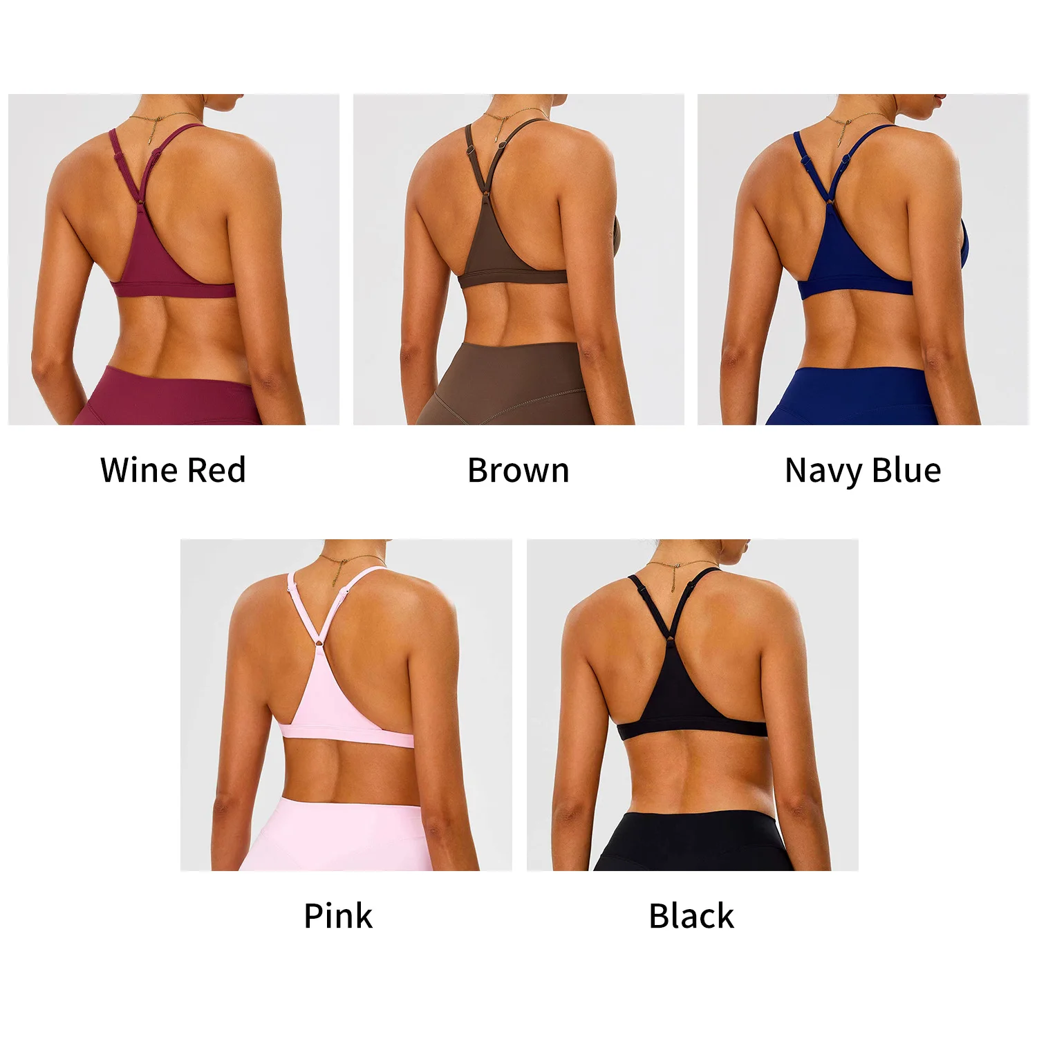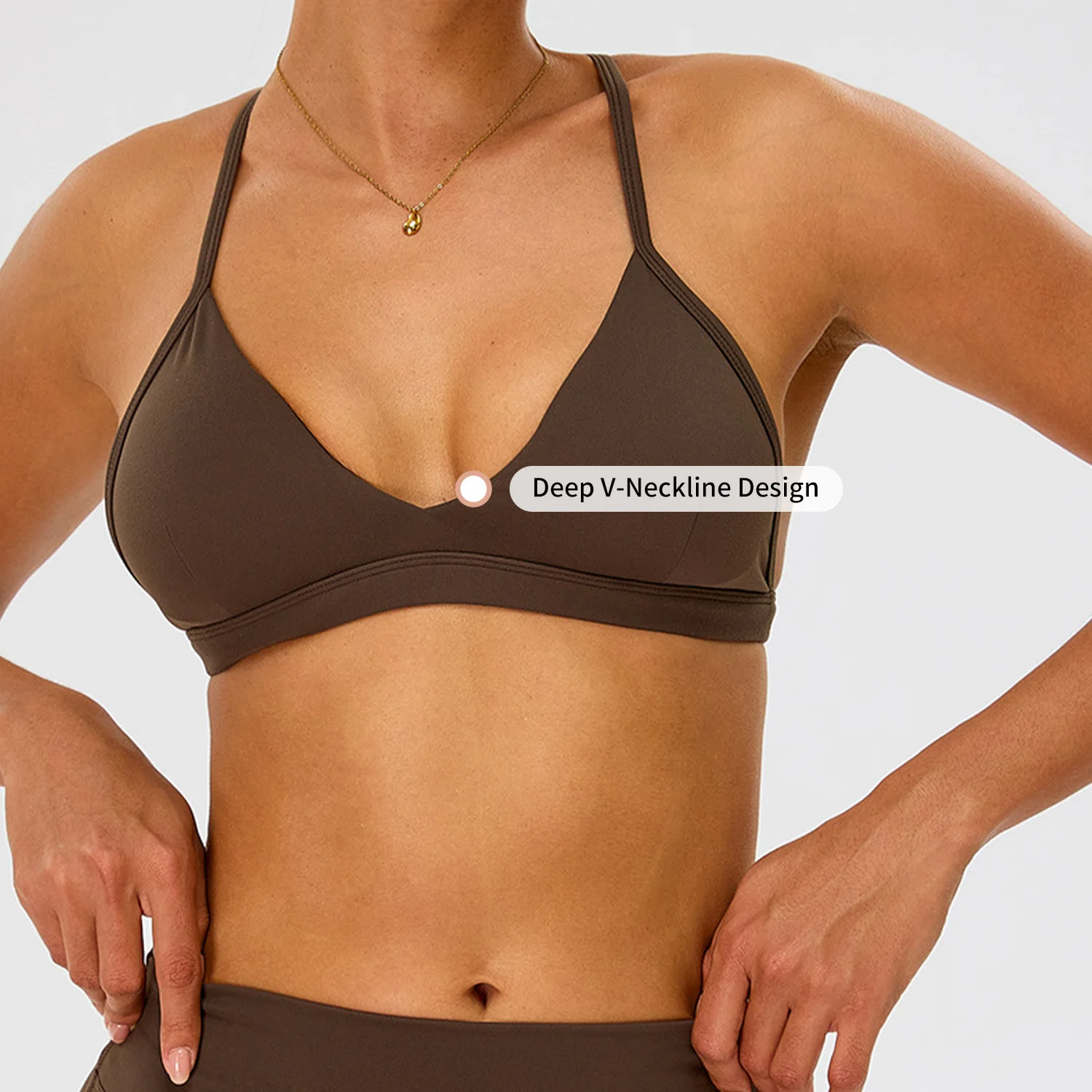 Custom Logo Women's Sexy Deep V-Neckline Sports Bra Solid Color Shockproof Y-Shaped Back Adjustable Strap Quick Dry Yoga Bra