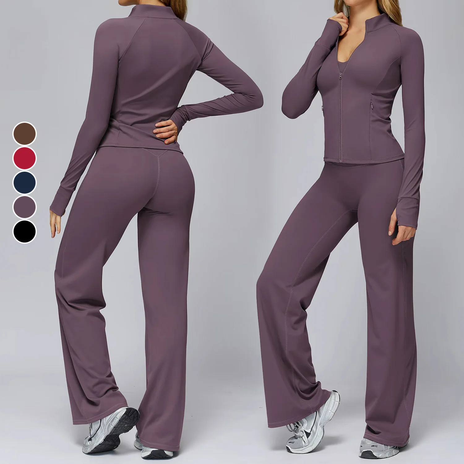 YISHENHON High Quality Gym Yoga Flare Leggings Hot Selling High-Waisted Wide Leg Pants for Women Solid Casual Sport Running