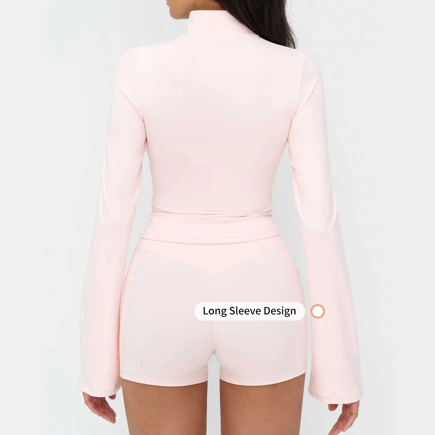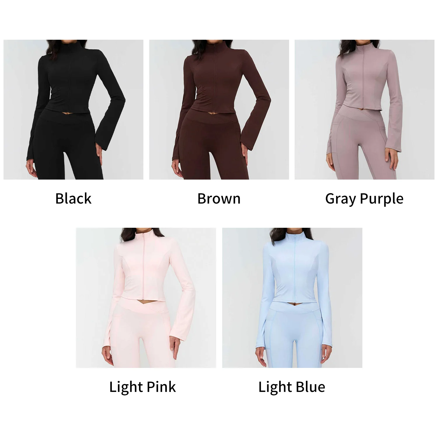 Women's Winter Naked Yoga Jacket Vertical Collar Zipper Trumpet Sleeve Moisture Wicking Outdoor Running Sports Top