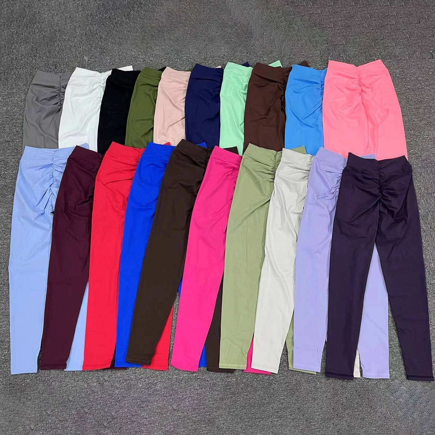 Best Quality Custom High Waist Peach Butt Tight Sports Pants Scrunch Butt High Elastic Solid Color V-Back Leggings for Women