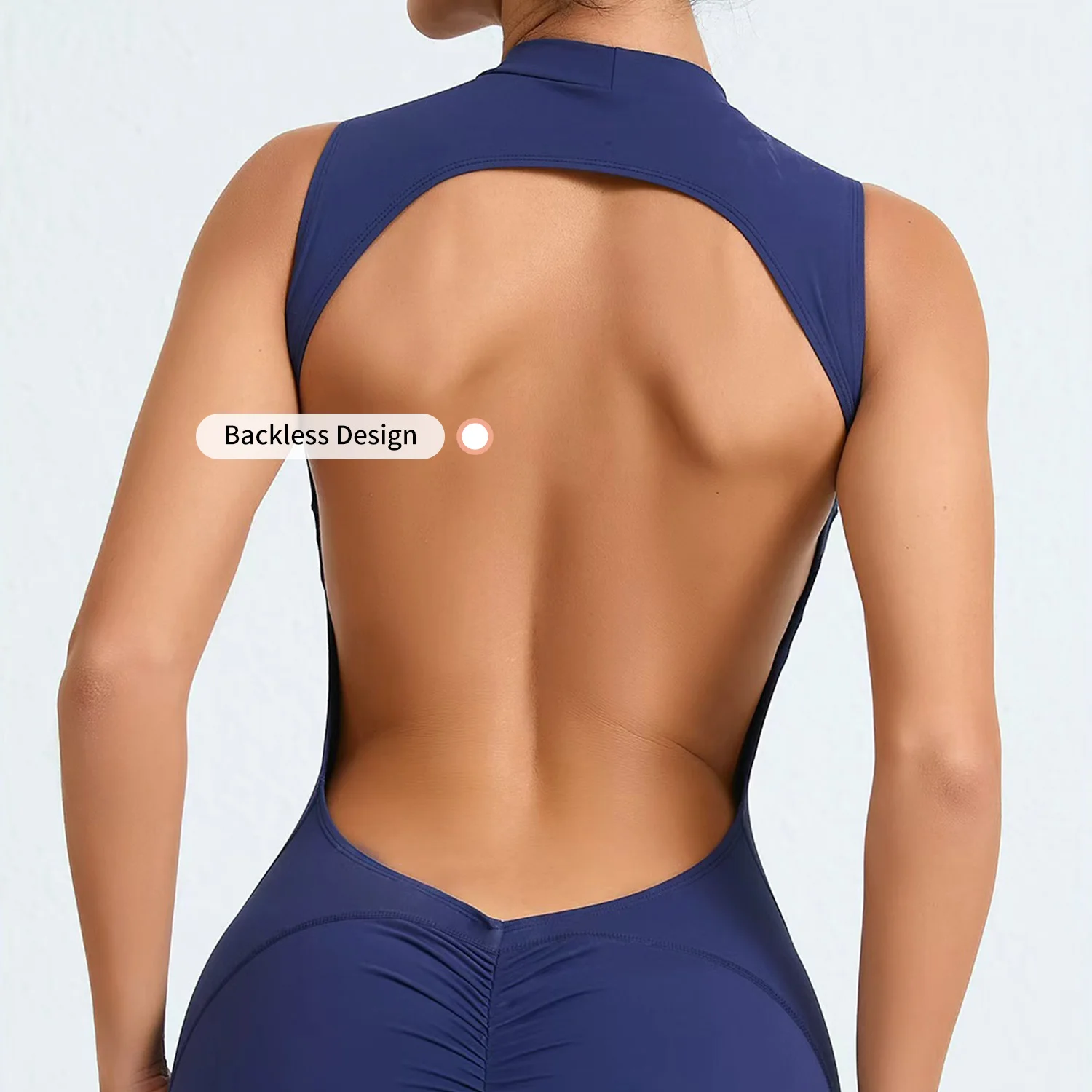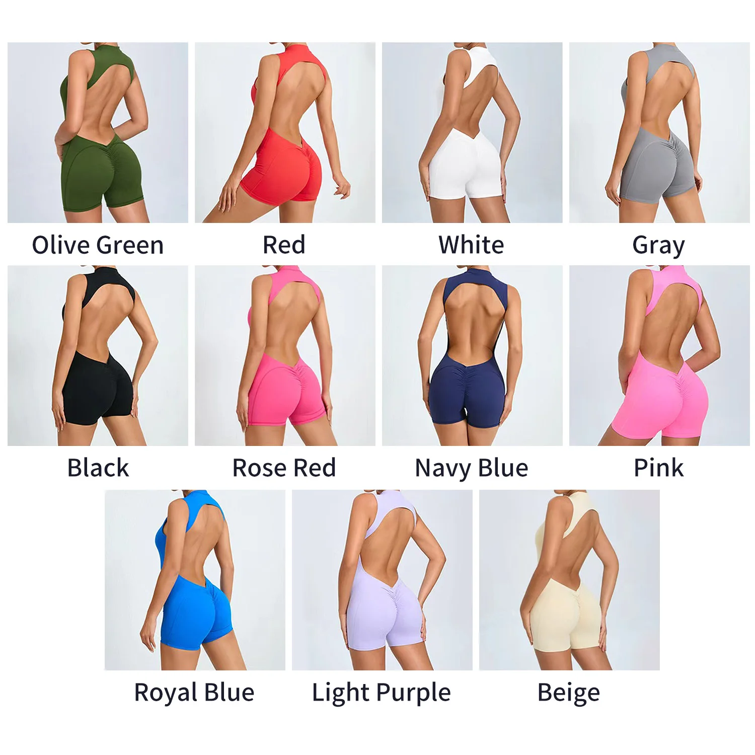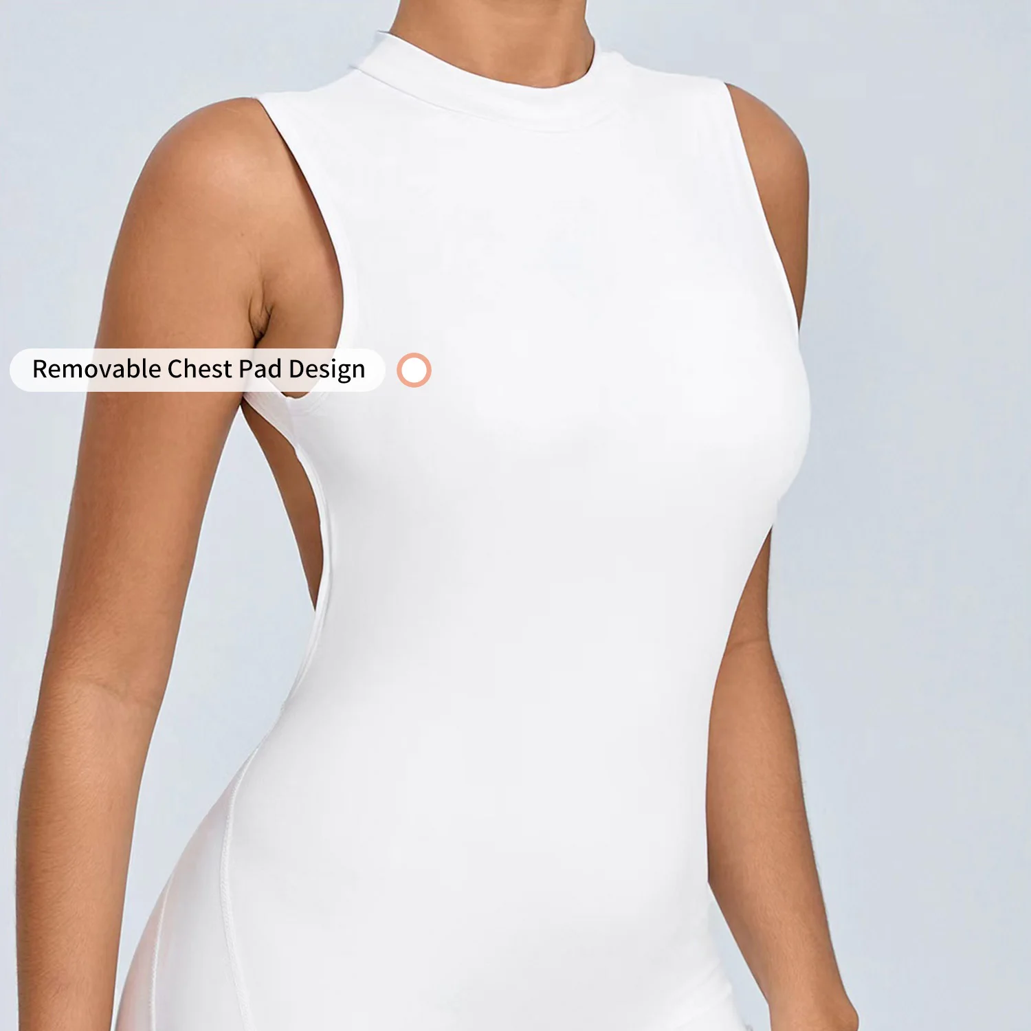 Custom Logo Moisture-Wicking Quick Drying Workout Gym Jumpsuit Soft Compression Sleeveless Solid Color Yoga Bodysuit for Women