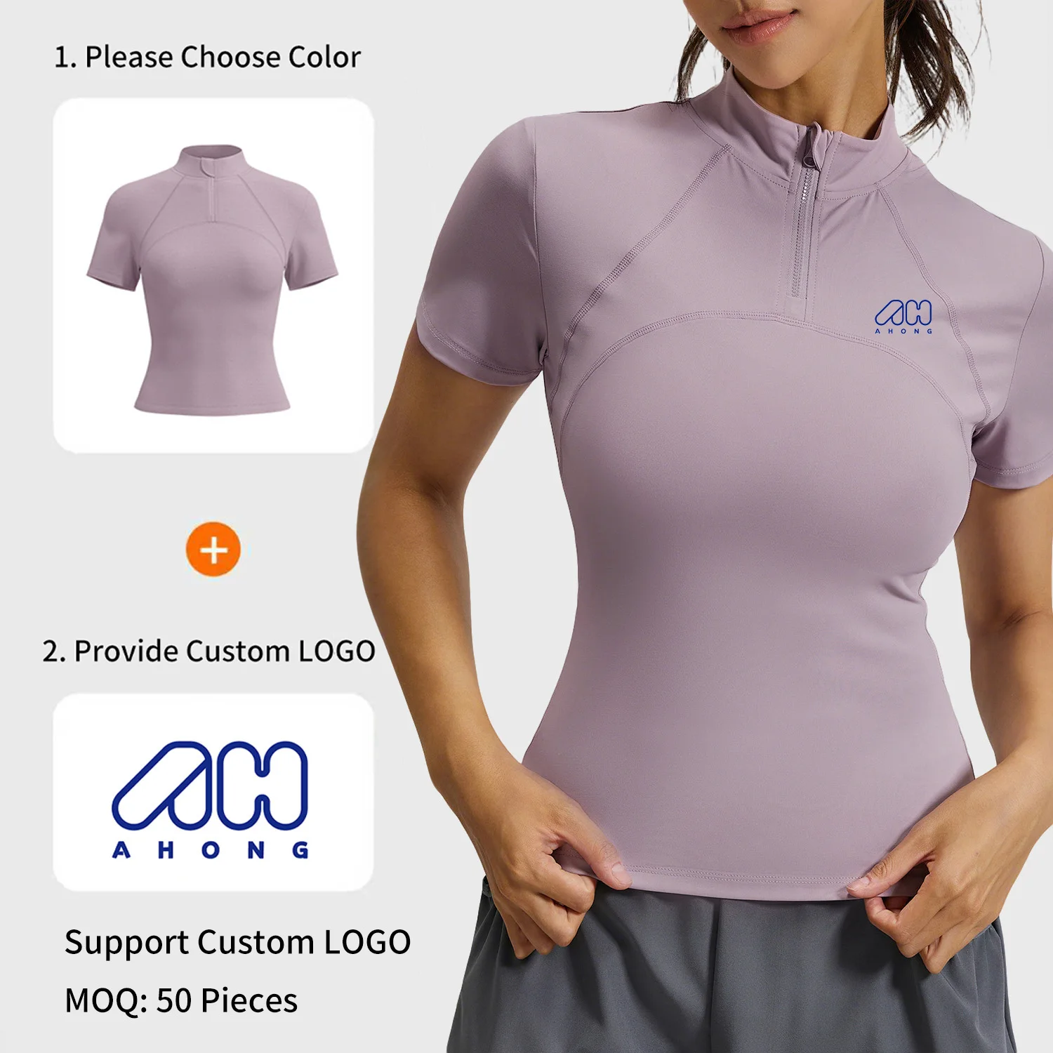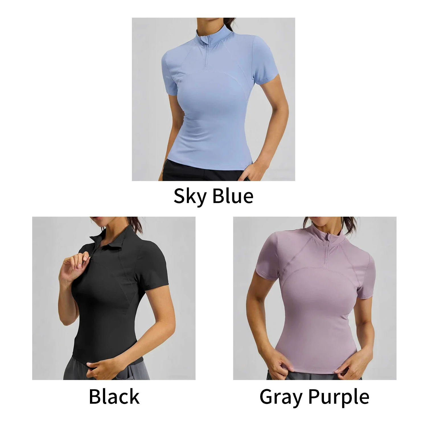 Wholesale Women's Quick Drying Yoga T-Shirts Short Sleeve High Elastic Slim-Fit Outdoor Running Half Zip Sports Fitness Top