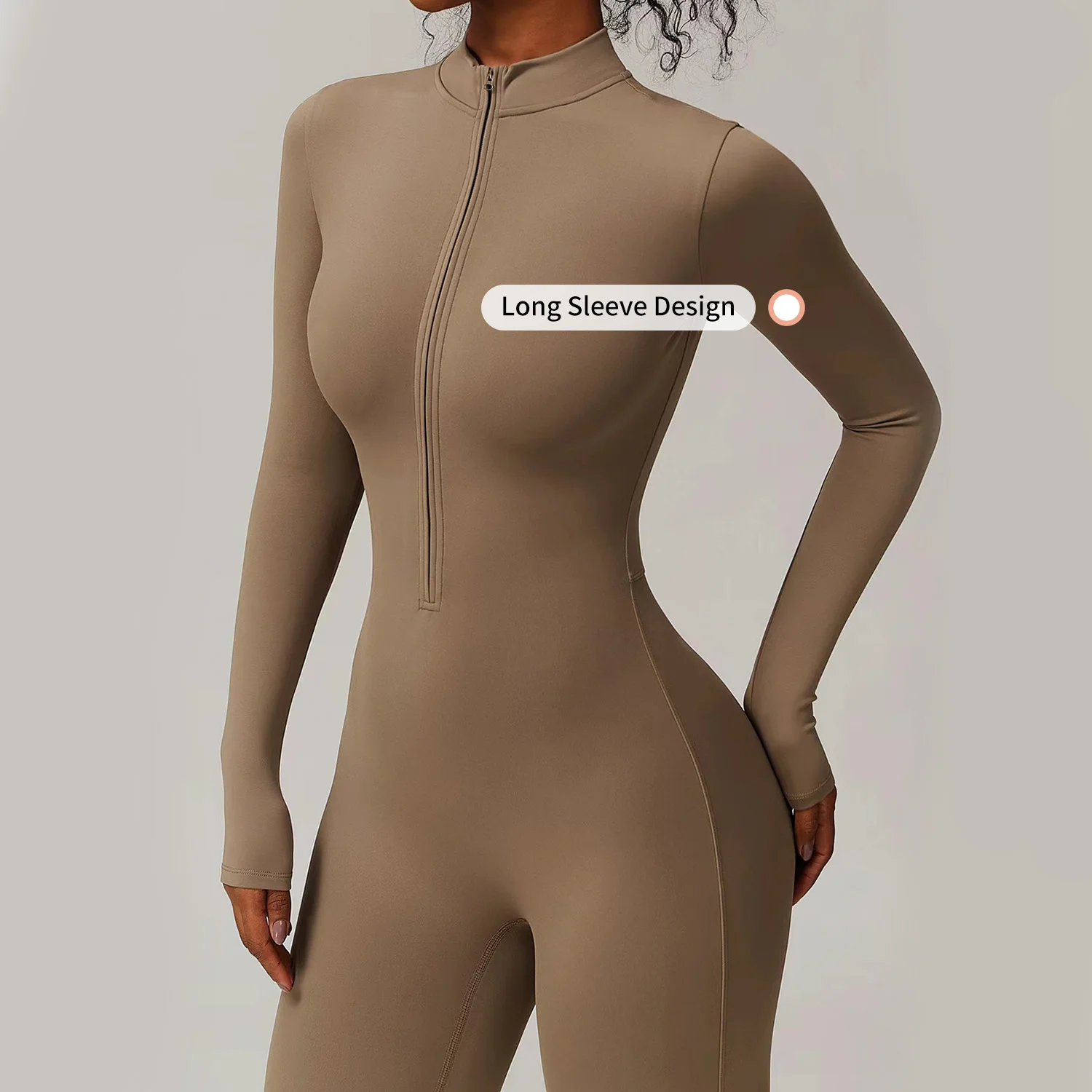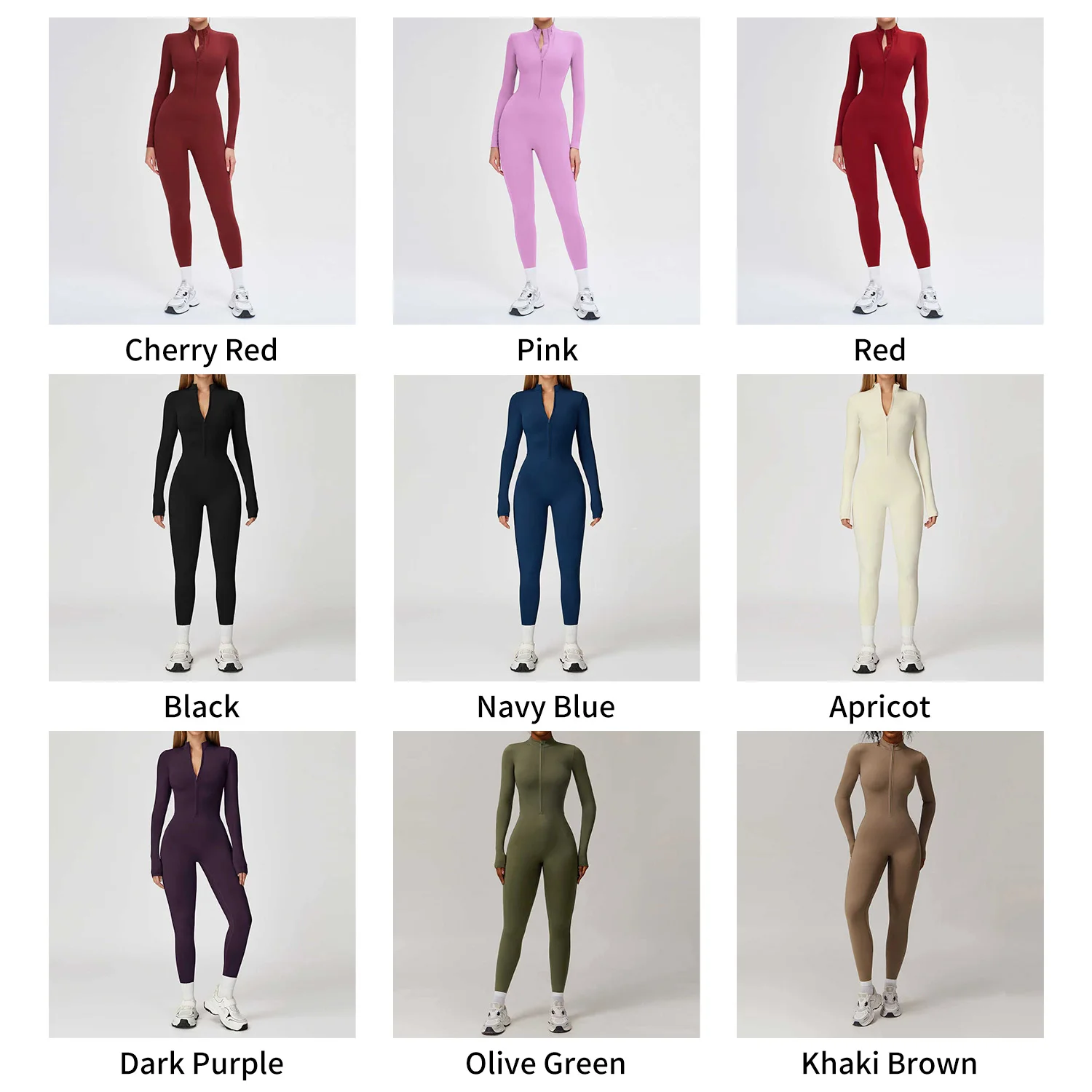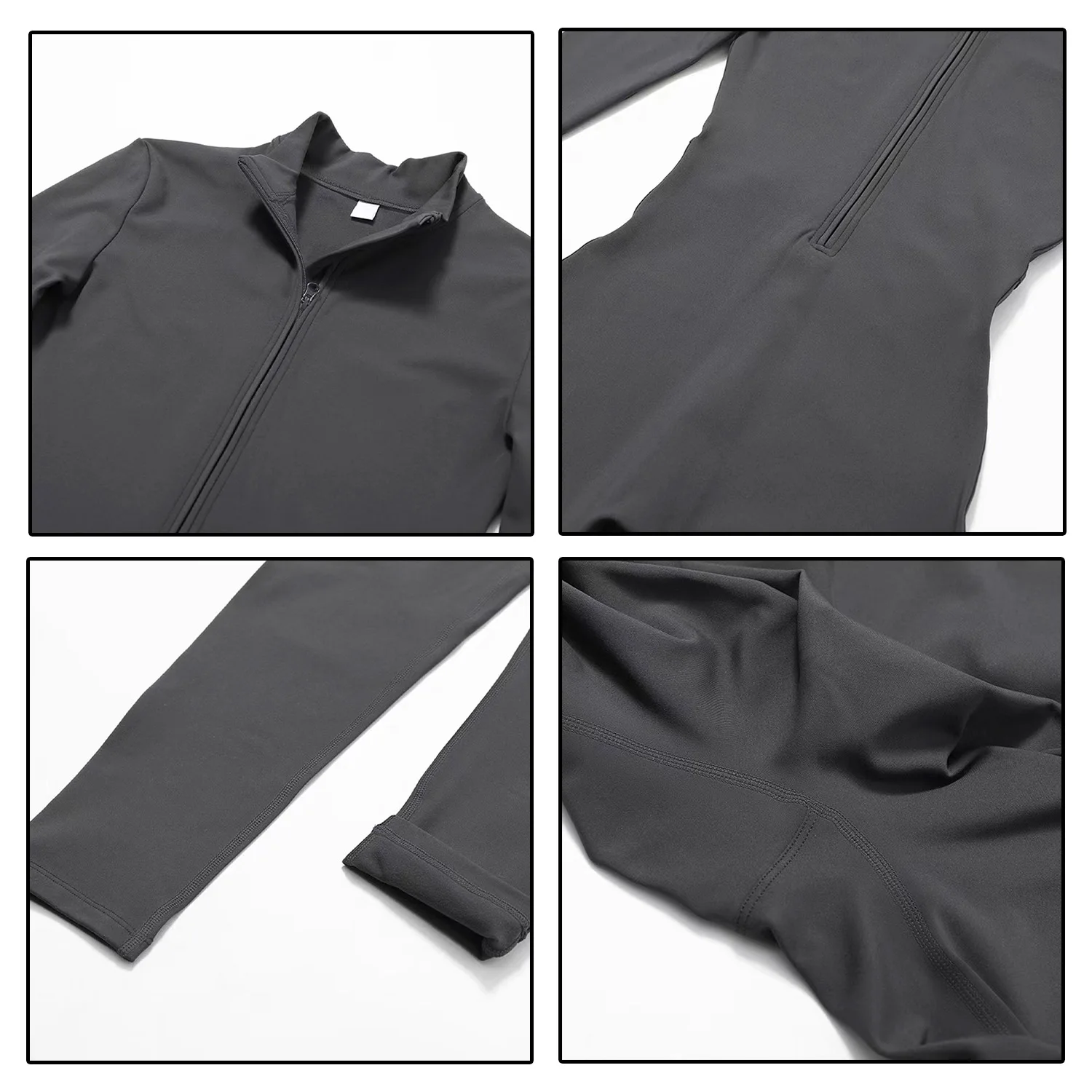 High Quality Custom Women's Zipper Long Sleeve Tight Gym Jumpsuit Outdoor Running Workout Tummy Control Warm Yoga Bodysuit