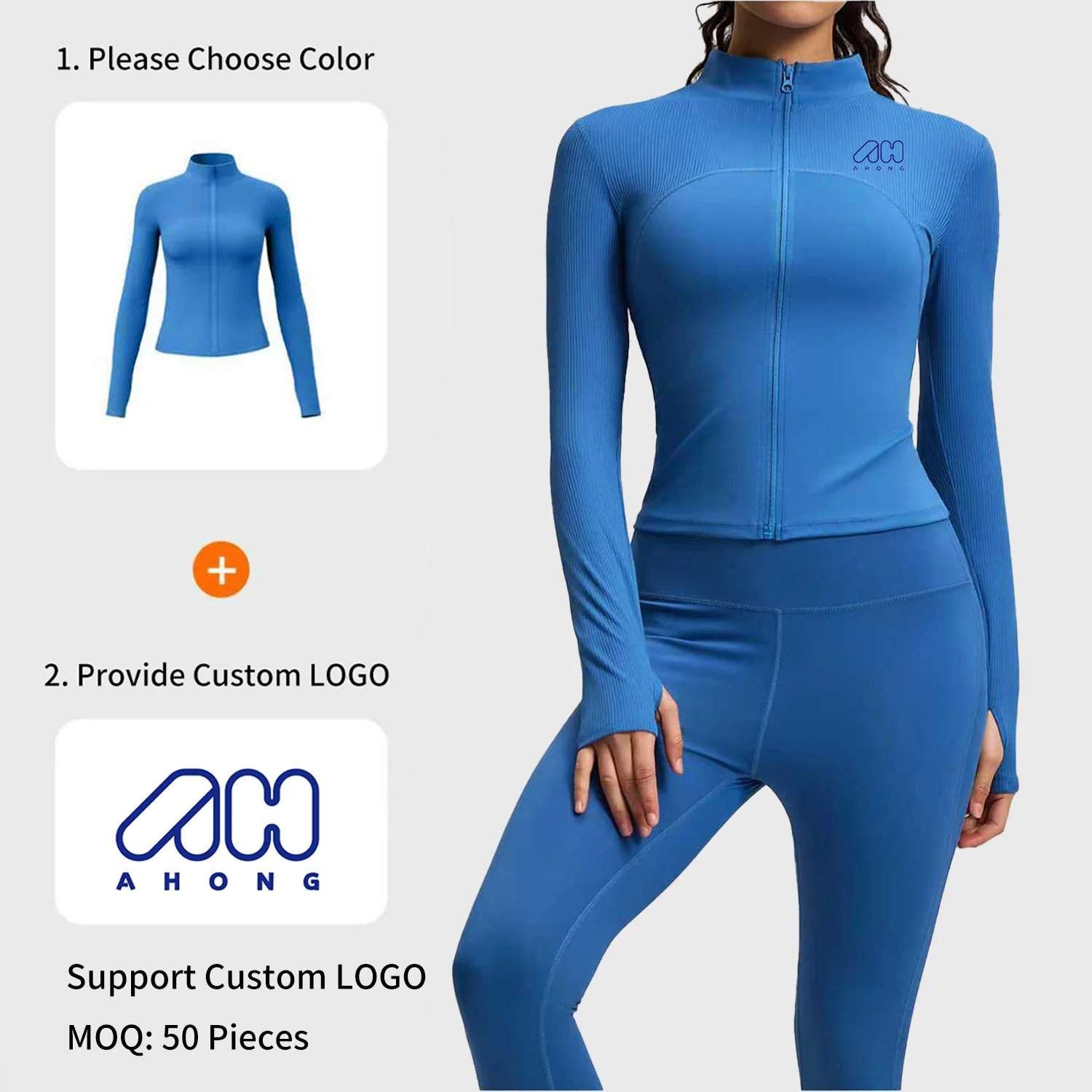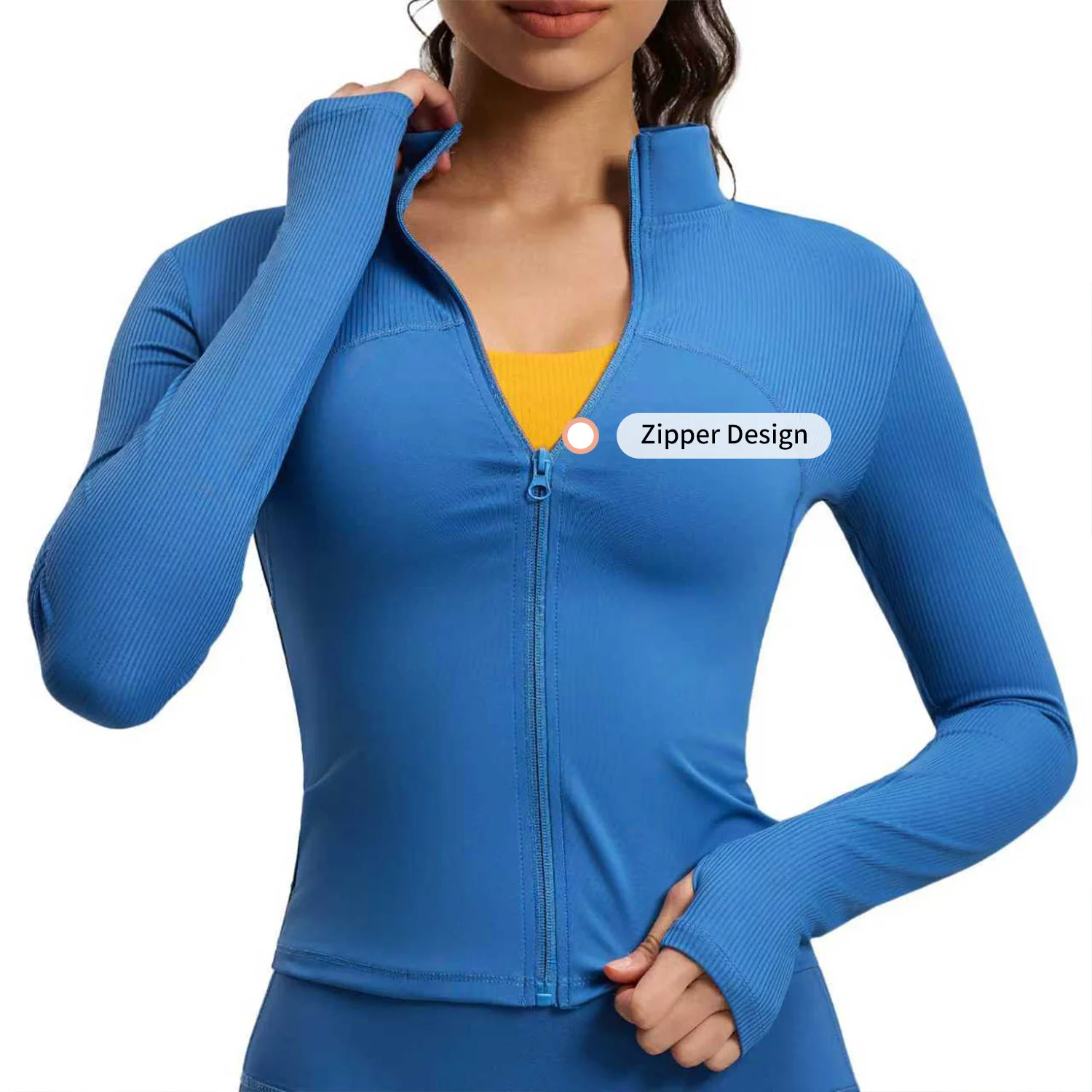 Wholesale Custom Breathable Quick Drying Yoga Jacket Soft Compression Elastic Slim-Fit Running Training Sports Jackets for Women
