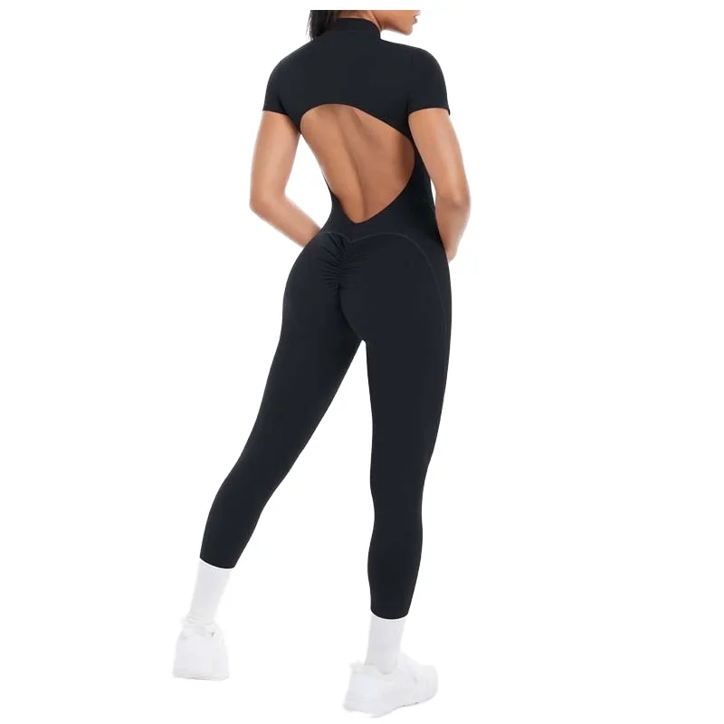 Women's Peach Butt Sports Jumpsuit Quick Dry Yoga Bodysuit Hollow Back Seamless Design Spandex/Nylon Short Sleeve Half-Zip