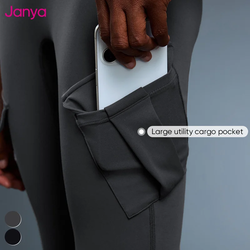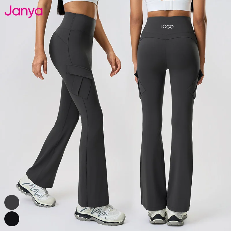 Janya Women's Slimming Fit Sportswear Cargo Pockets Workout Gym Fitness Pants Nude Feel High Waist Flare Sports Yoga Leggings