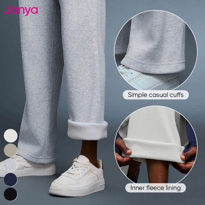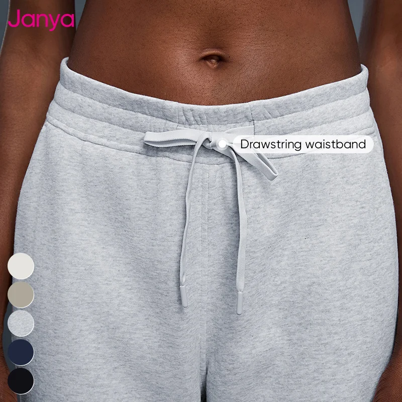 Janya Women's Drawstring Elastic Waist Sports Jogger Pants Loose Casual Warm Fleece Sweatpants with Straight Wide Leg for Autumn
